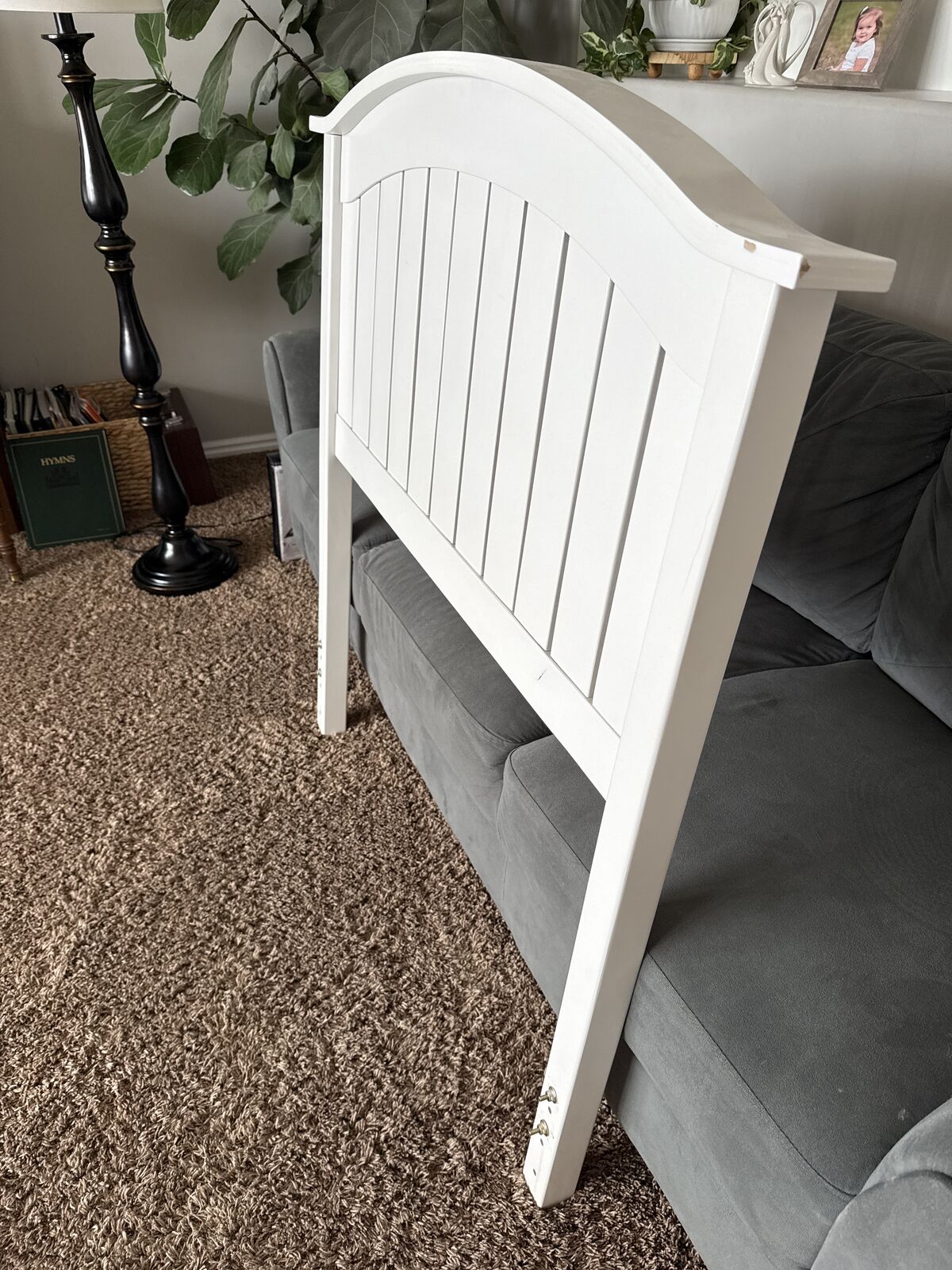VenmoLarge headboard in good condition, comes with metal twin bed frame that it attaches to. Great condition, it’s just too tall in the spot I need to put it. 44 1/2 inches tall, 3 inches deep, 39 inches wide.