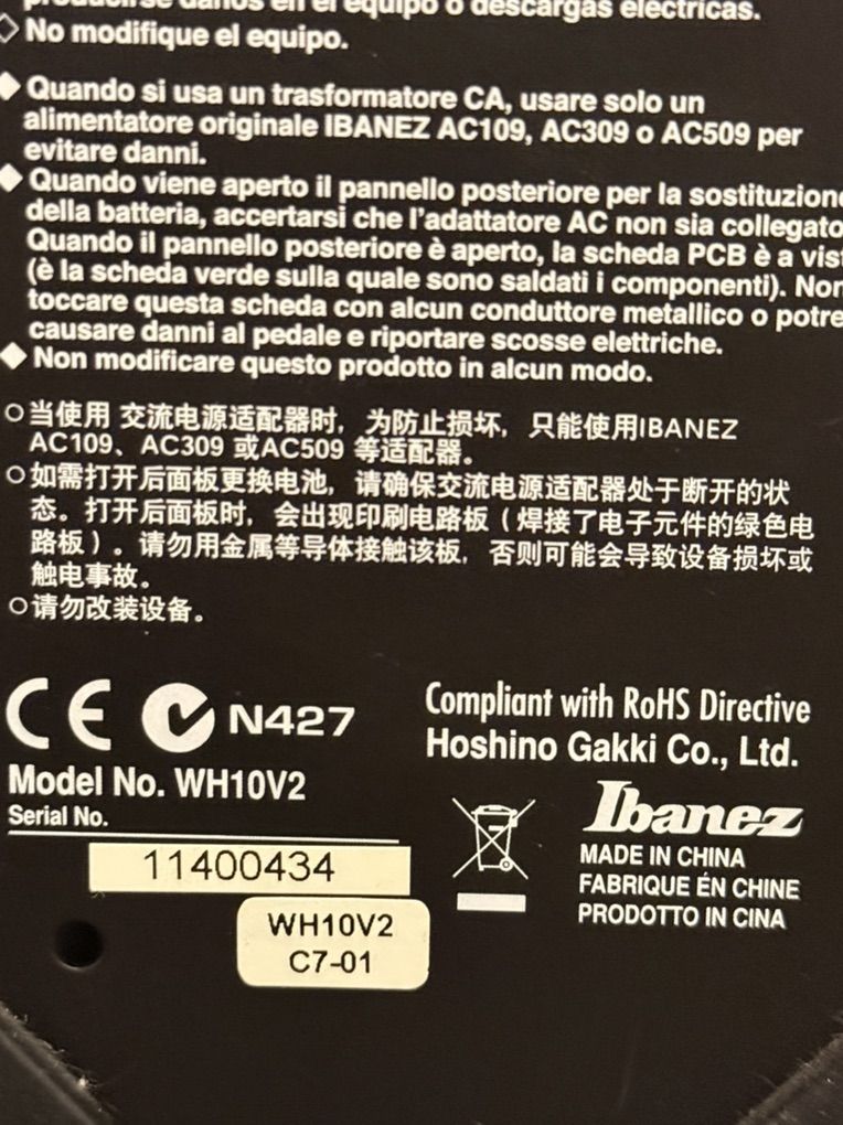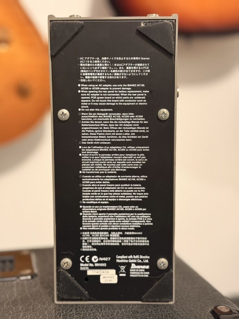 ApplePayIbanez WH10V2 Wah pedal in good working condition. All functions operate as they should, including sweep, depth control, and mode switch. This is the reissue of the classic WH10 with the distinctive gray enclosure and teal logo plate, offering a wide, vocal-style sweep that works well for guitar or bass (GTR/BASS switch on the side).