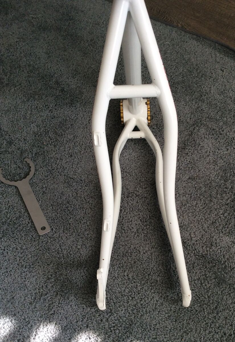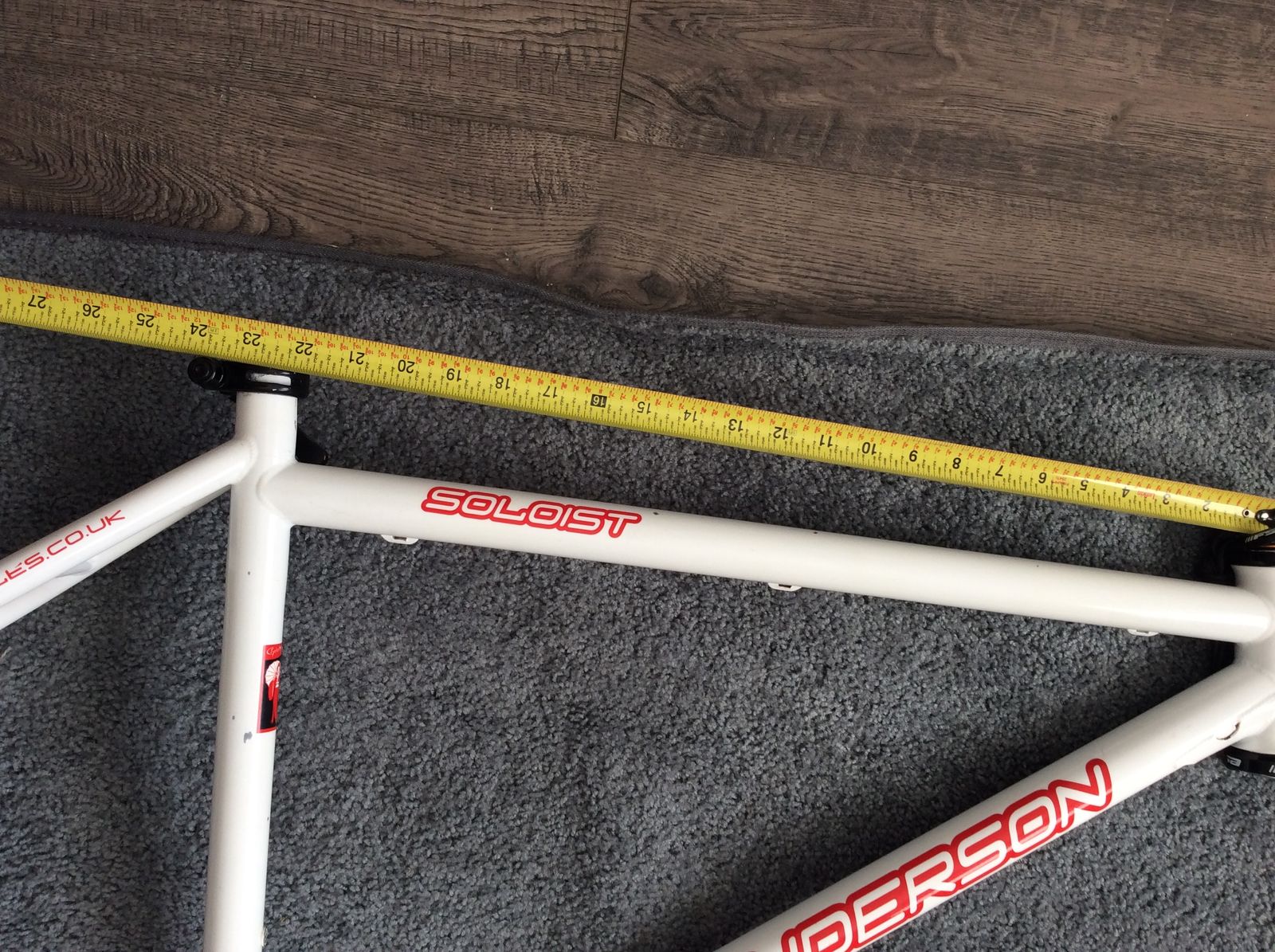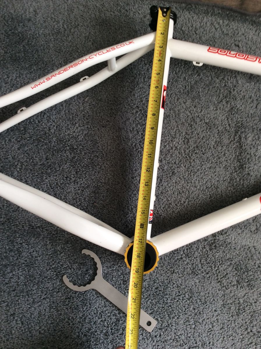 Sanderson Soloist singlespeed MTB frame. 26", will fit 26 x 2.4 and 24 x 2.6. IS disc tabs, comes with FSA cartridge bearing headset and GT qr seatpost clamp. 135mm qr. Spanner for eccentric bottom bracket lockrings included.