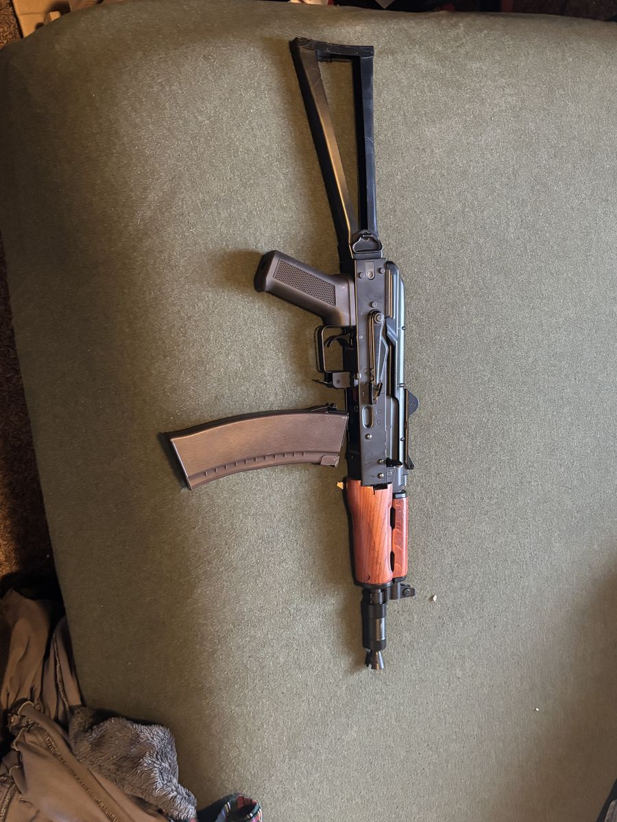 ak 74u comes with battery and charger and has only 1 mag mac 11 has 1 mag and green gas does not come with and im willing to trade also