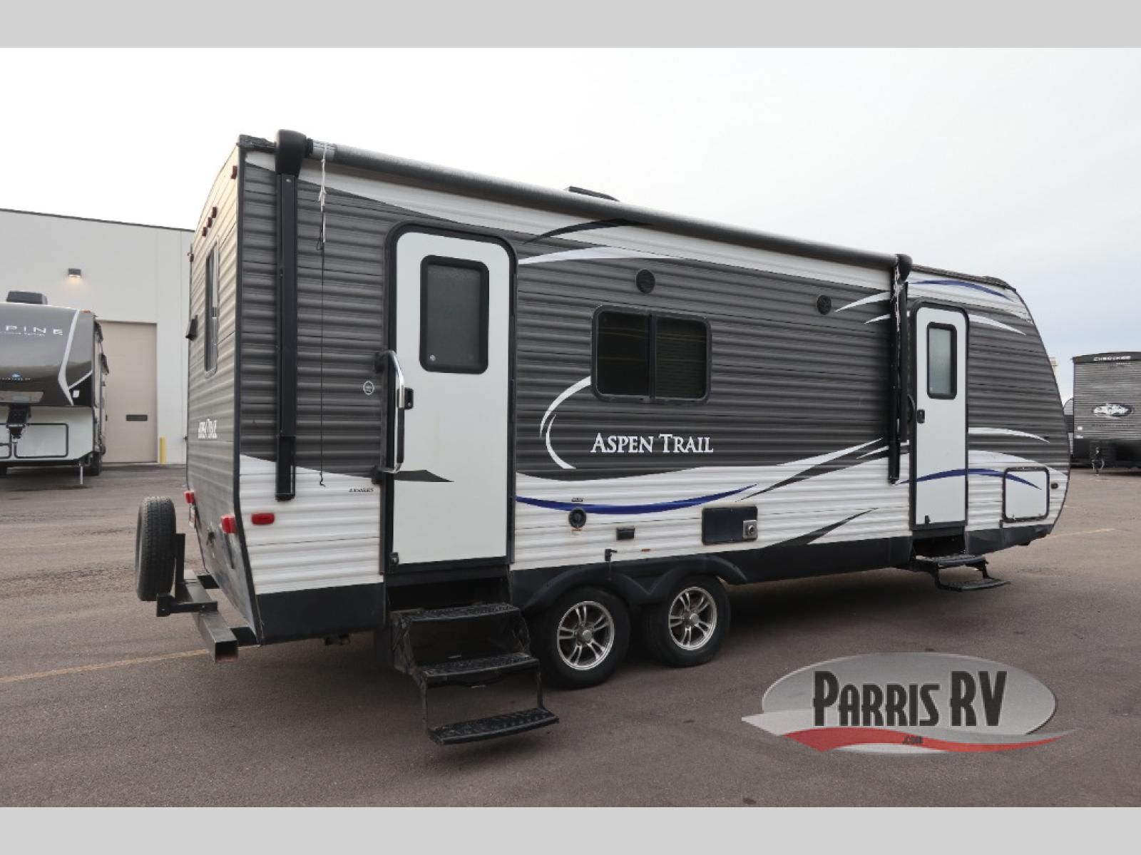 Enjoy camping in this single slide Aspen Trail 2390RKSW travel trailer. It features a rear kitchen, dual entry doors, and so much more!