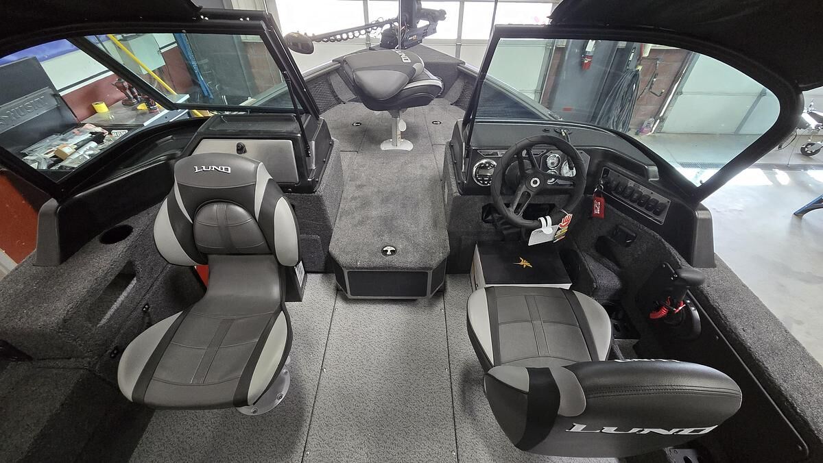 The 1775 Lund Impact XS sports a full windshield to comfortably protect the entire family. The family fishing boat features include a center rod locker two livewells large casting decks and even a ski pylon options for family fun. There's even a boarding ladder and rear flip seats to accommodate the entire family and friends.