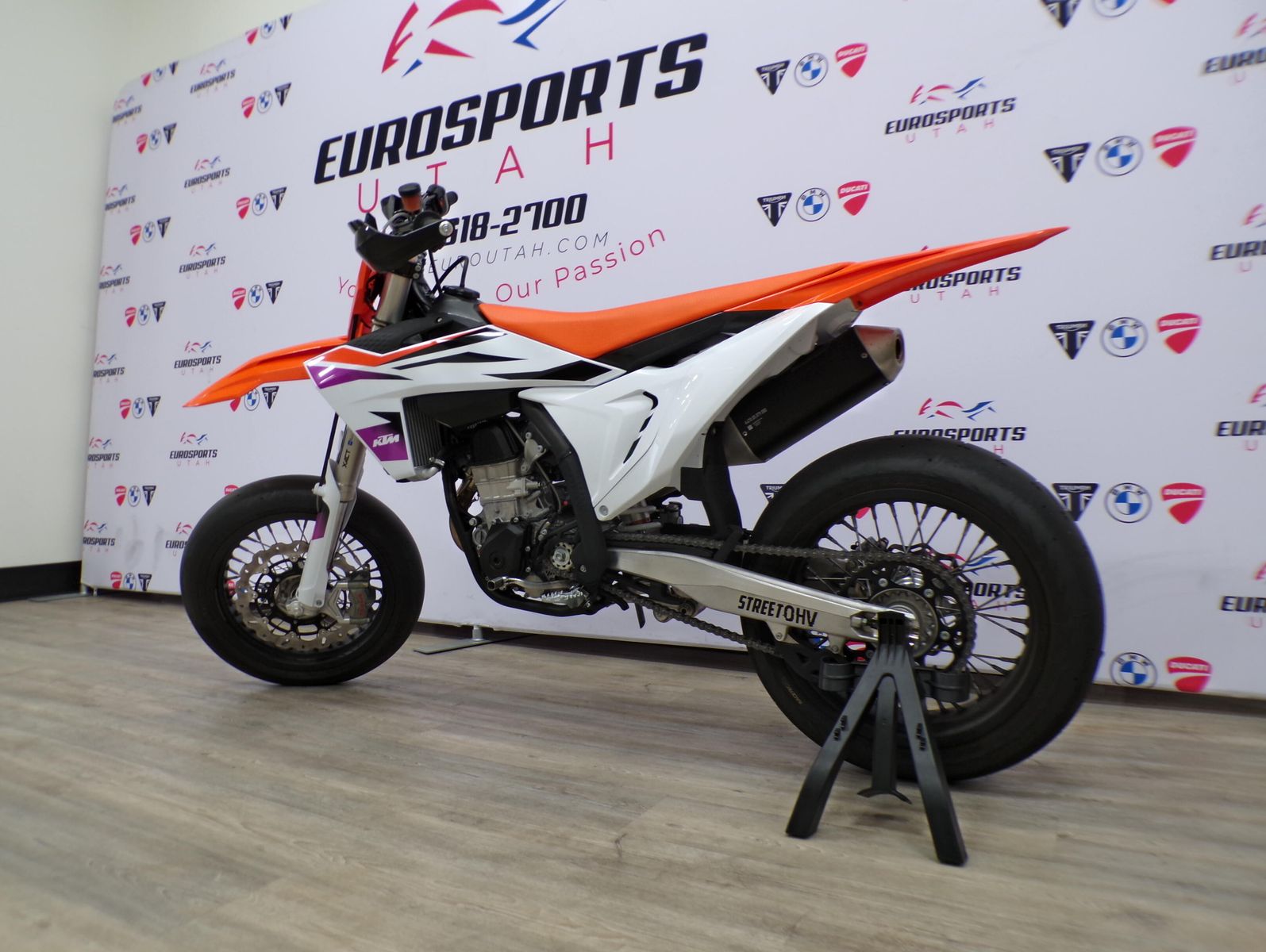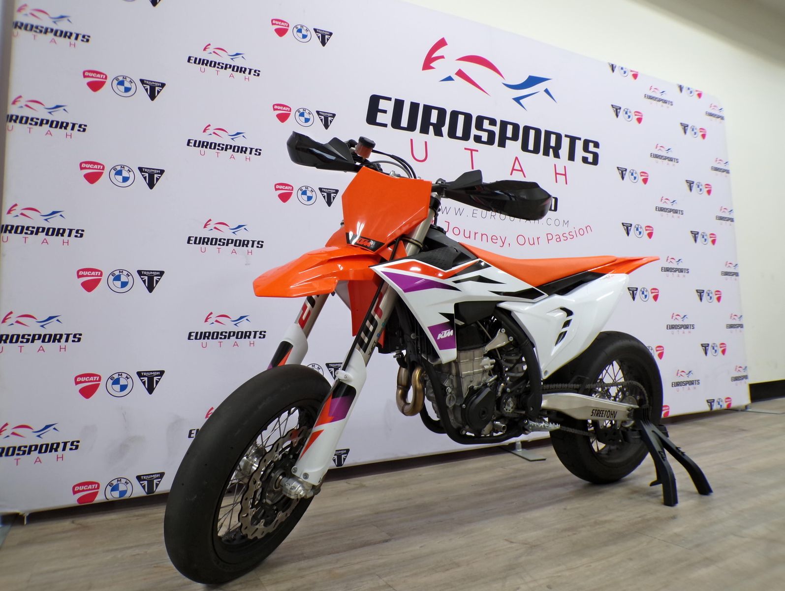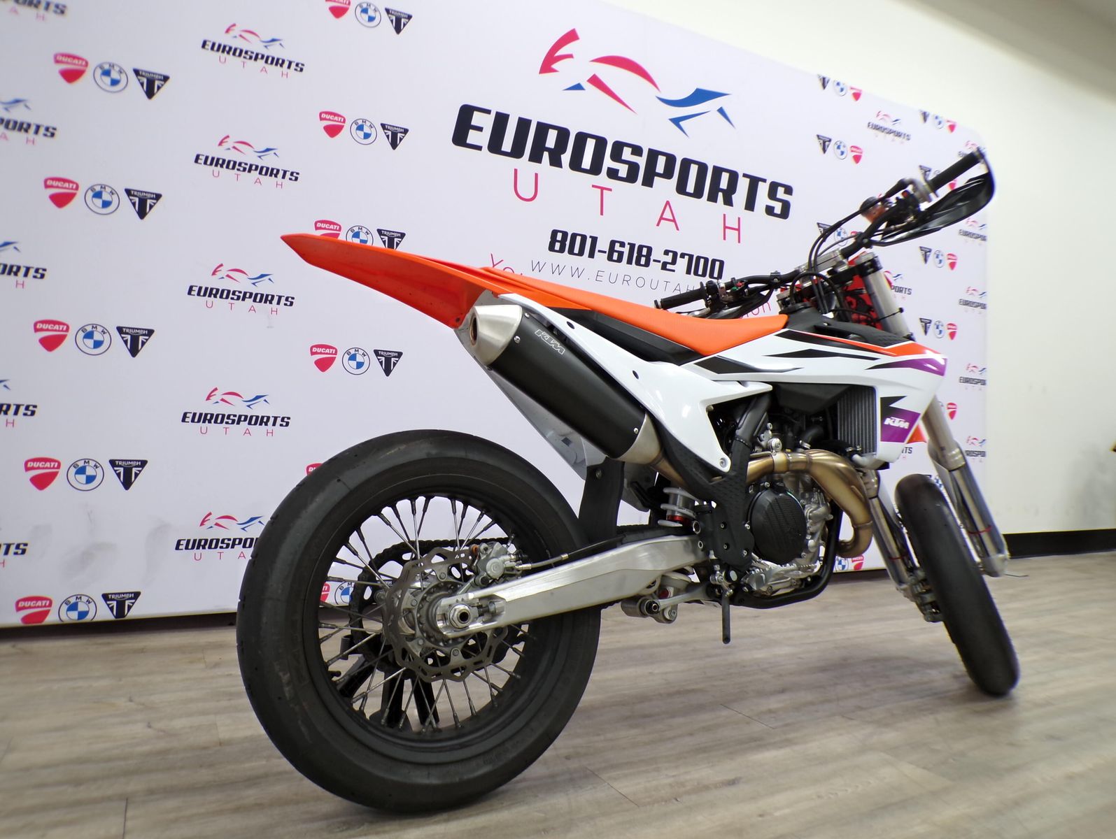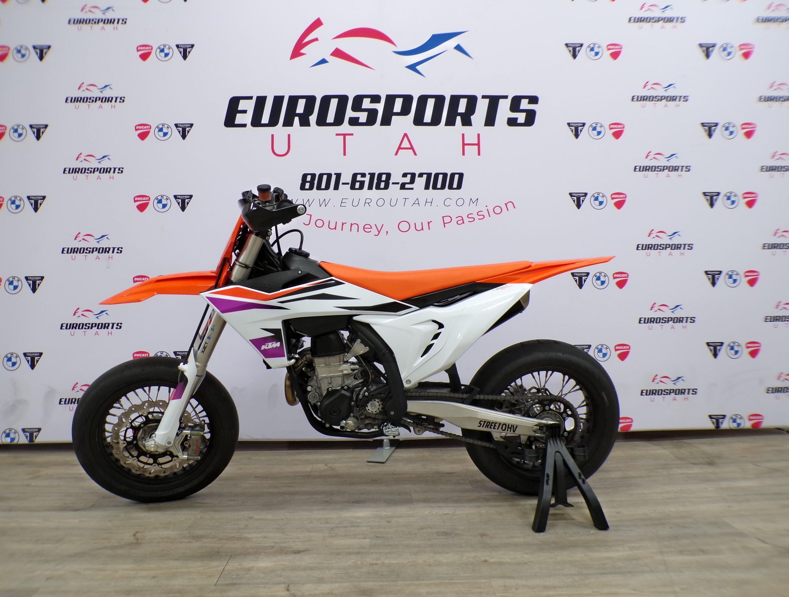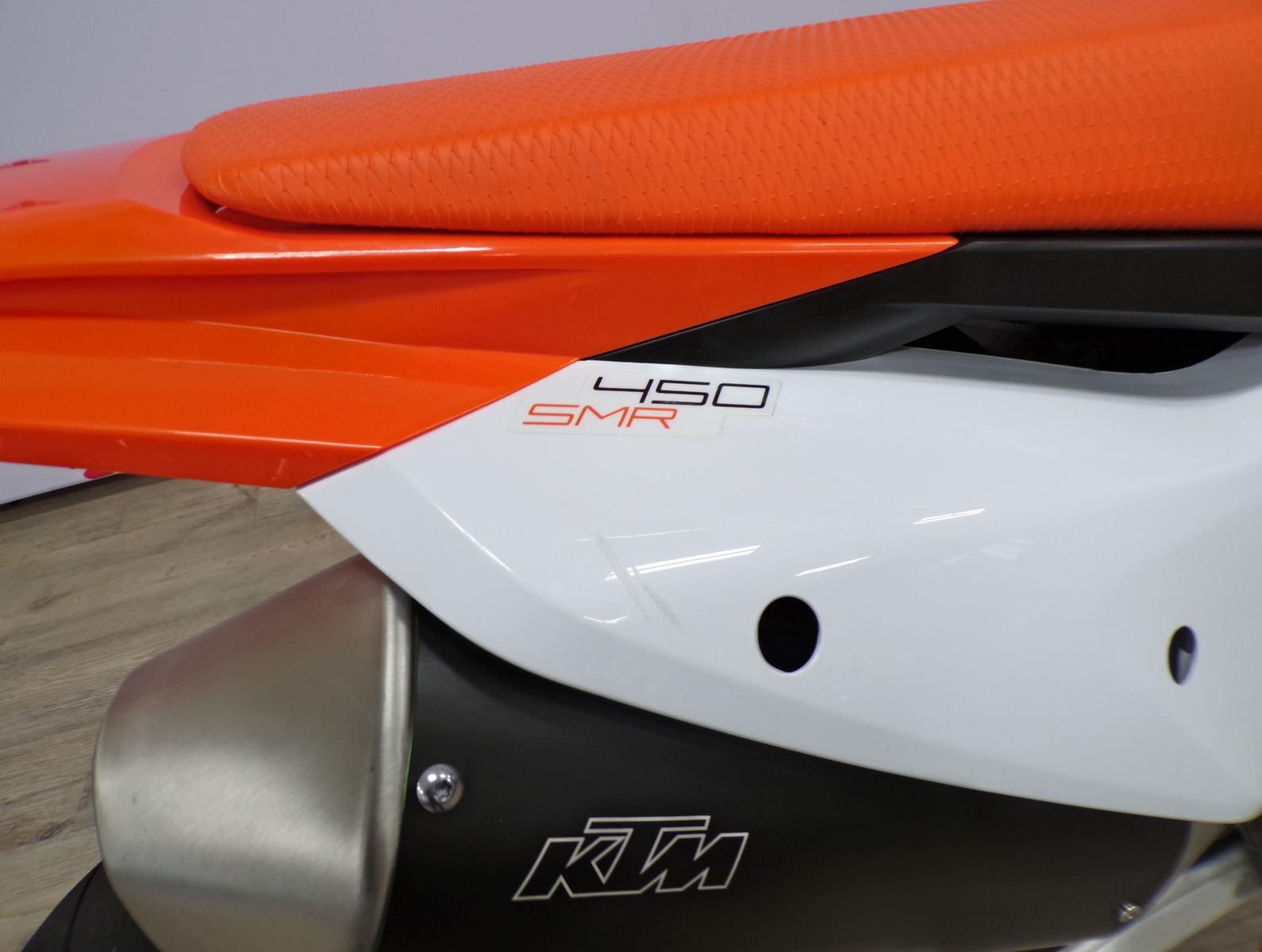 Clean with very low hours! The KTM 450 SMR represents the only real all-aspect form of motorcycle sport. Taking all the best bits from the championship-winning KTM 450 SX-F and adding more asphalt bias like racing slicks, big brakes, and top-notch suspension. Simply put, it's READY TO RACE in the very purest form.