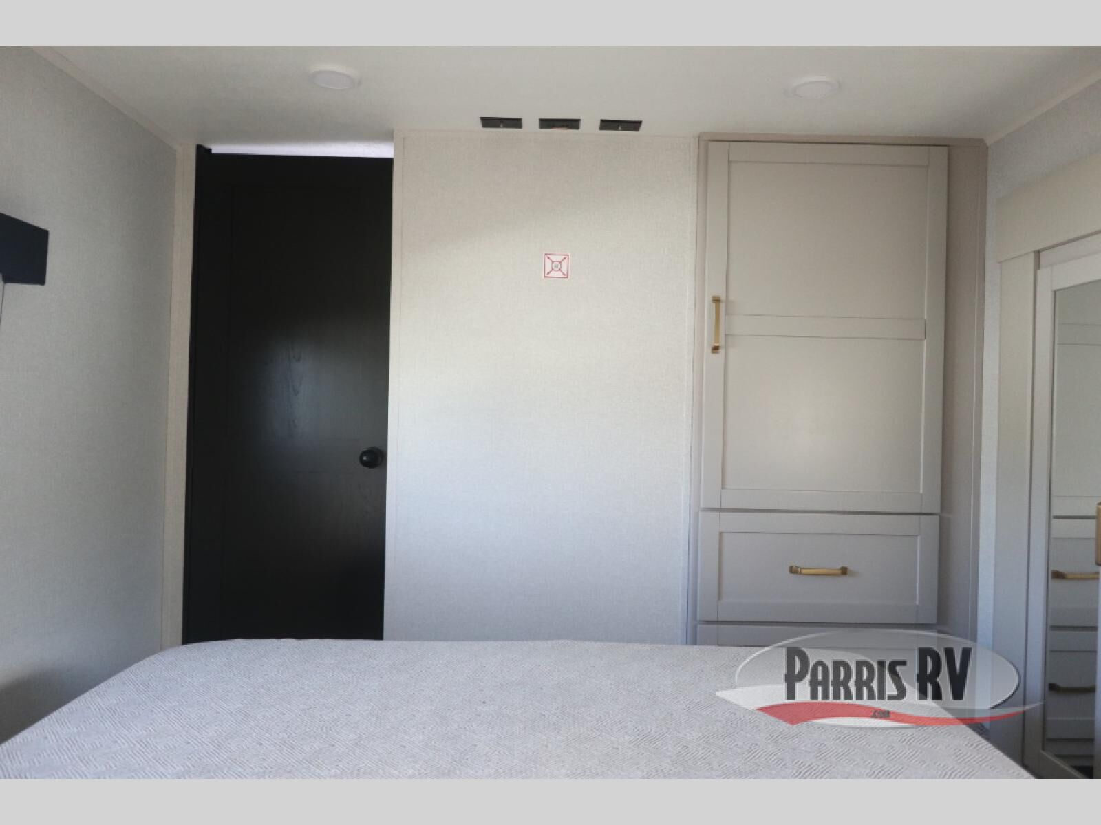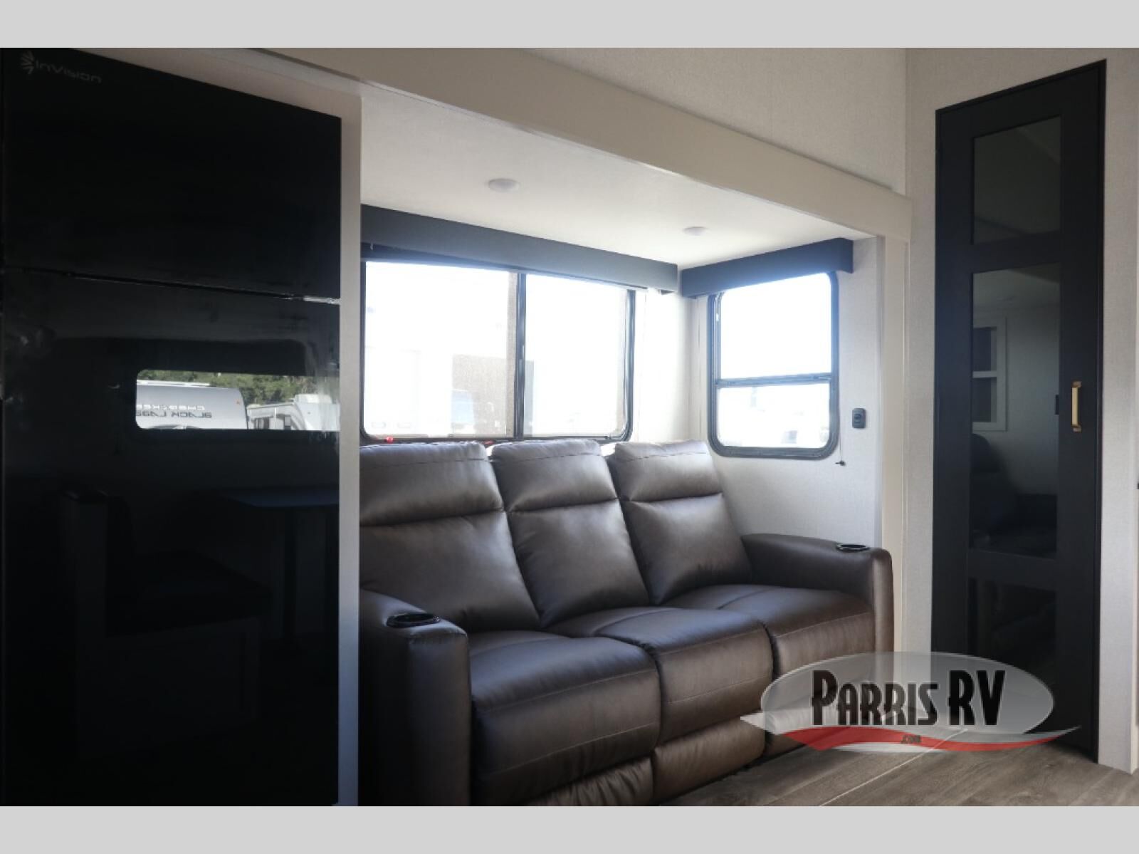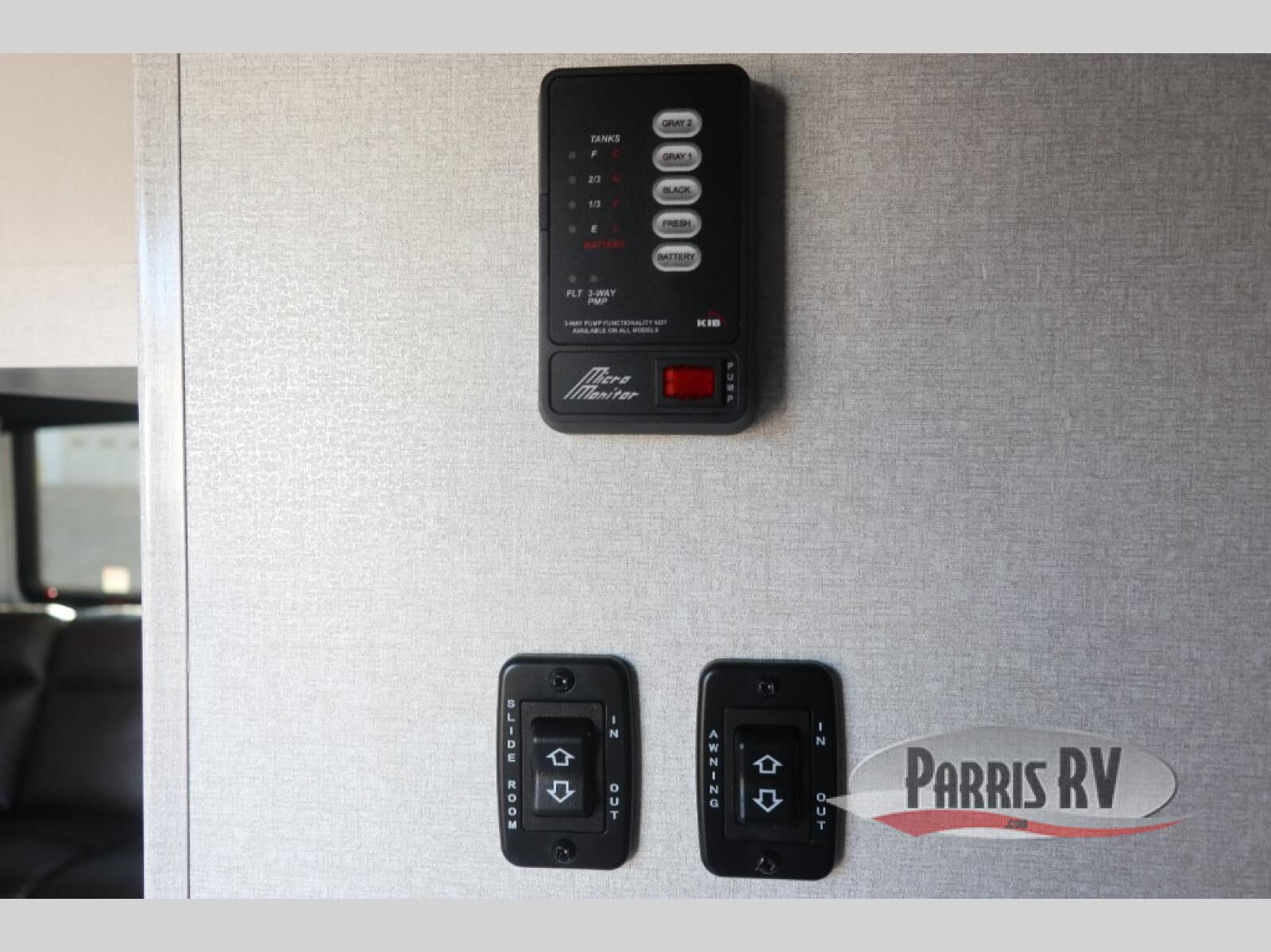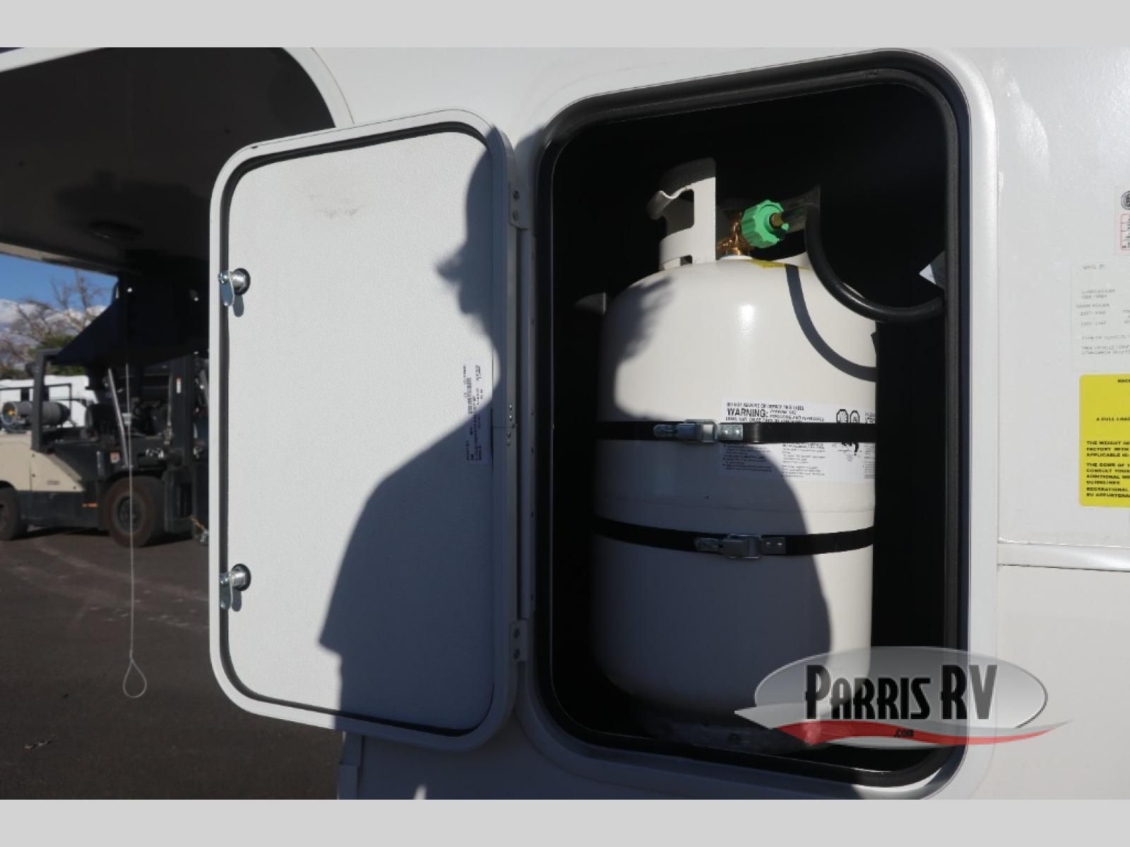 The fifth wheel you were waiting for! The spacious rear kitchen is equipped with a three-burner cooktop, microwave, booth dinette, 12V refrigerator, and sink, providing ample space for meal preparation. Overhead cabinets and a pantry provide ample storage for cookware, dishes, and other essential kitchen items. The living area features a trifold sofa, perfect for relaxation and entertainment. The full bathroom's thoughtful design ensures that everyone has their own space, and the front bedroom is a retreat from the world, featuring a plush queen bed, a spacious wardrobe, and a closet.