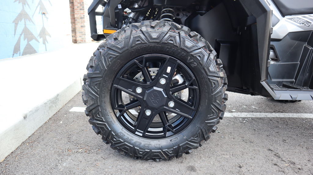 90-horsepower ProStar power pairs with on-demand all-wheel drive that reacts to wheel slip for instant traction, complemented by 27" Duro tires on 14" aluminum wheels for grip in loose terrain.