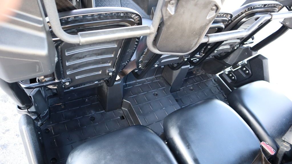 Class-leading 115.6 inch wheelbase helps smooth the ride and creates best-in-class interior space, with offset middle seats and headrests for added comfort, 3-point seatbelts for all passengers, integrated handholds, and tough roto-molded doors to help keep mud and debris out.