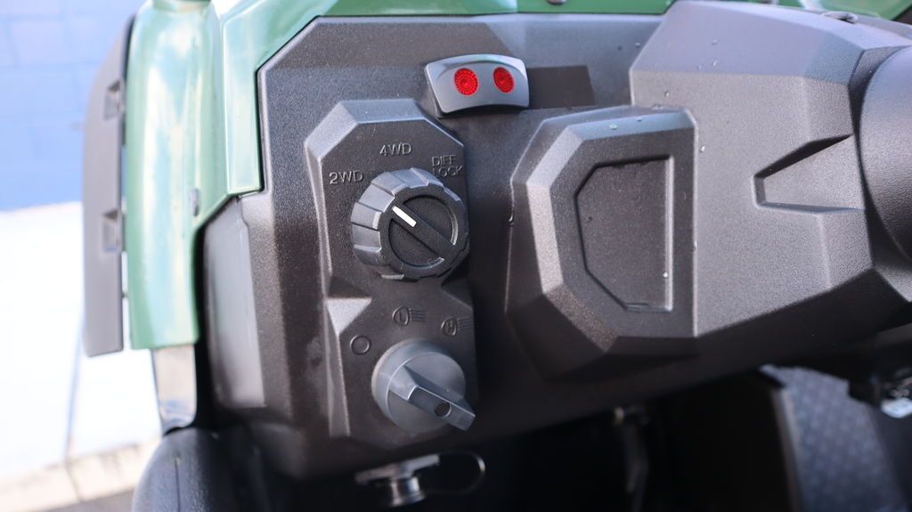 Ultramatic transmission with dual-range Hi and Lo plus reverse uses a centrifugal clutch to maintain constant belt tension and a sprag clutch for all-wheel downhill engine braking, paired with three-position On-Command 4WD to switch between 2WD, limited-slip 4WD, and fully locked differential 4WD.