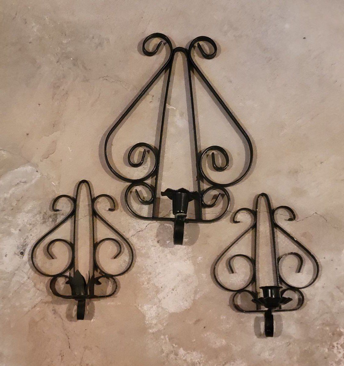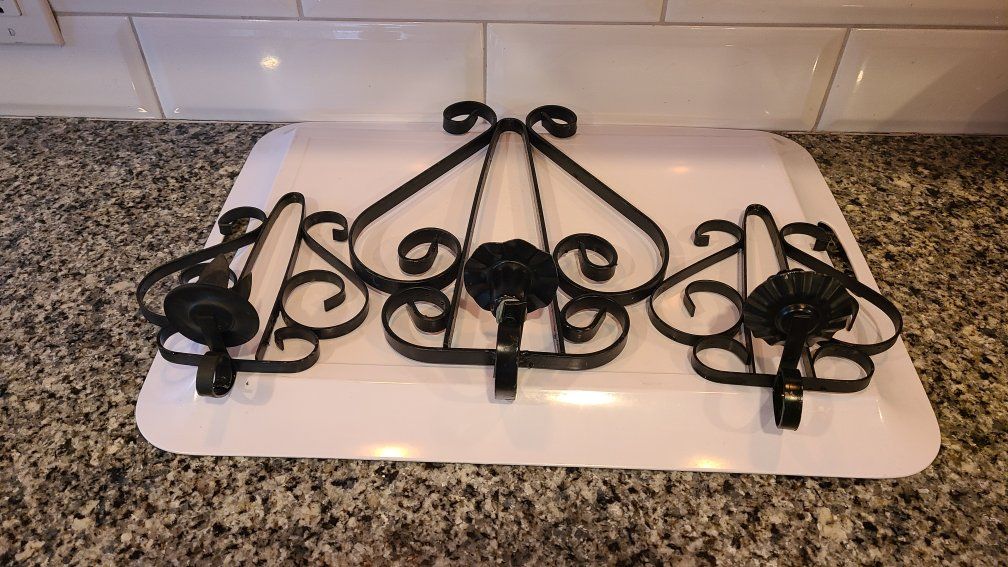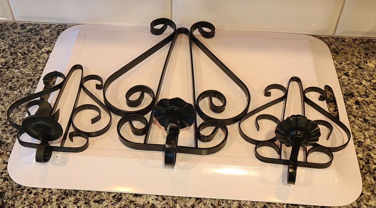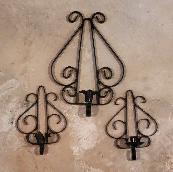 3 candle sconces. Metal 1 big 2 medium All 3 are included in the price. More pictures above