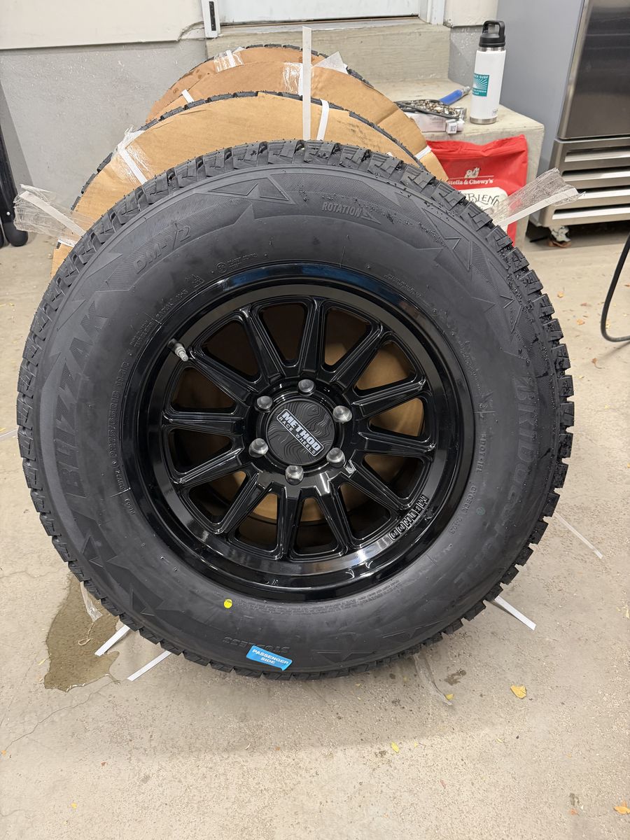 ApplePayNew. Mounted once. 4x WHEELS ONLY. BLIZZAK'S NOT INCLUDED. Beautiful wheels. Will serve you very well, just not the look I was after. Mounted once, driven once. Removed from vehicle. Will fit lot's of rigs with 18X9, 6X5.5 - specs in images for you to confirm fitment. Complete with Lexus tire pressure sensors, lugs, rings.
