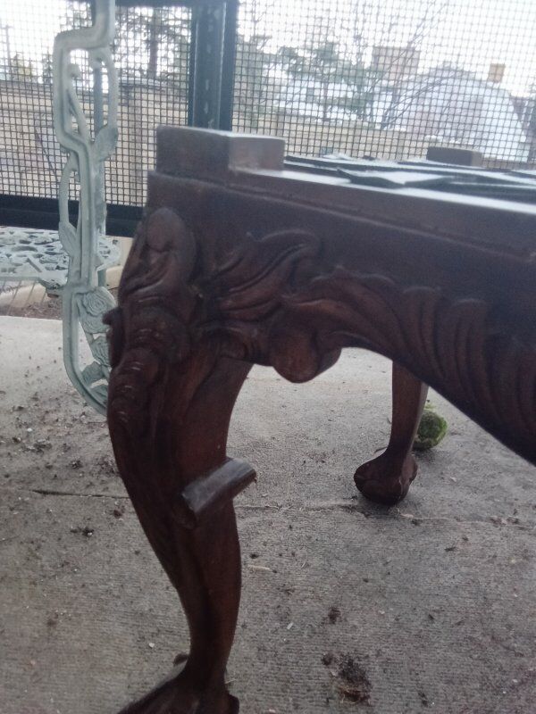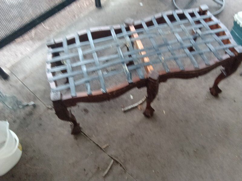 this is a beautiful piece and great shape all completed all the way down to the cushion in the original bench straps the only thing was removed was the old fabric and the nails originally used to install it needs a little work but very little beautiful piece late 19th century piece like this goes for around $800 easy I'm looking for half more best out text is better