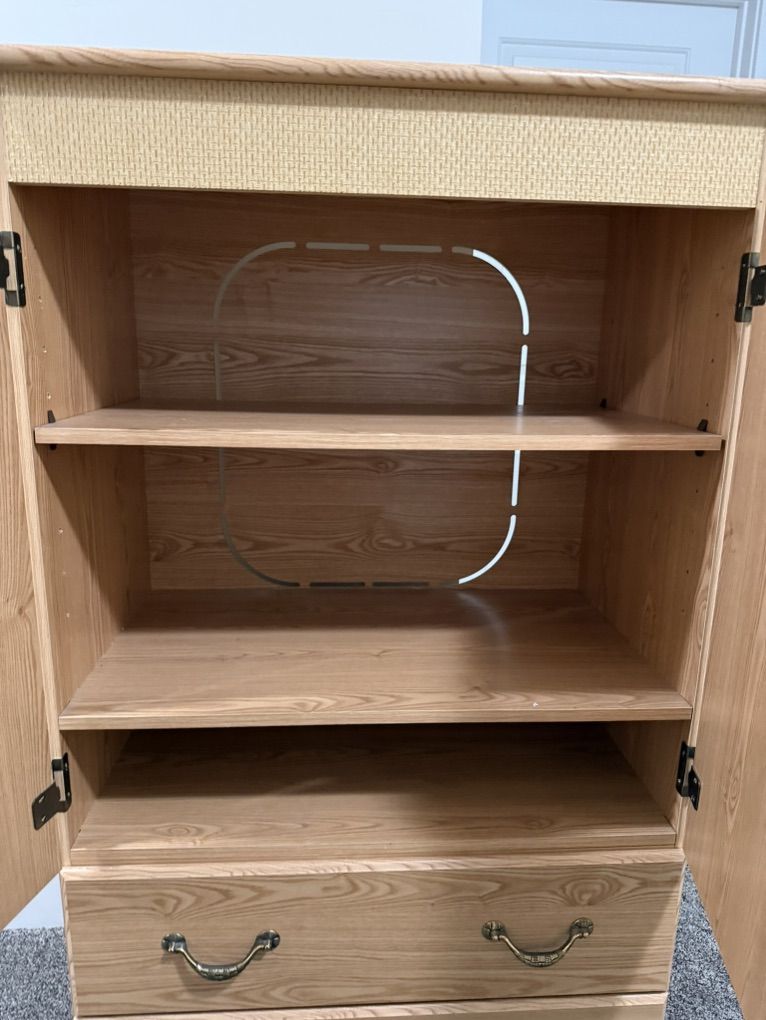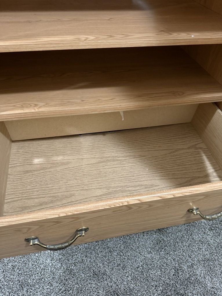 VenmoSolid wood cabinet in great shape. Super sturdy and heavy — not cheap pressed board. The wood grain is really nice and gives it a warm, classic look.
