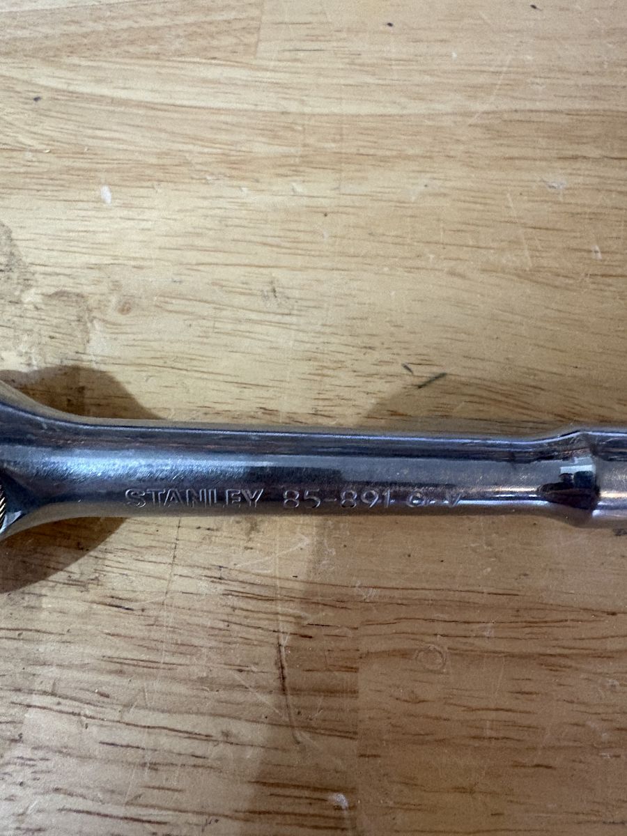 PayPalStanley 3/8" drive round head ratchet. Can spin the ratchet by gripping the ratchet head when bolts are broken loose.