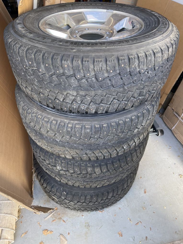 VenmoSet of 4 Studded Tires on Ram 8-165 Rims. Mounted and balanced. center caps and lug nuts. Will fit Ford 8 lug and Chev 8 lug older than 2010.