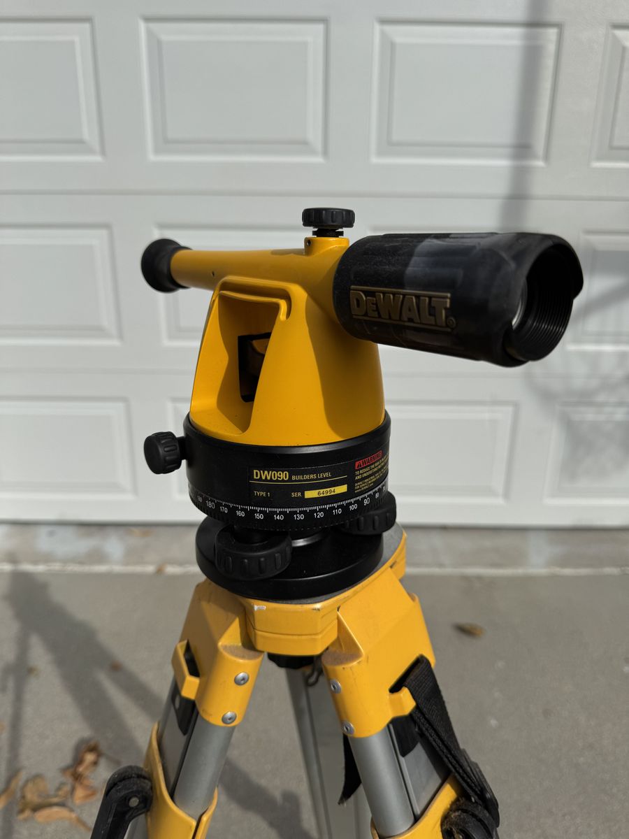 DEWALT DW090 Transit Level, Surveying Tool with Tripod and Rod 20X Magnification