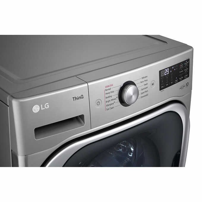 Handle large laundry loads with this LG front-load washer. Make use of the SenseClean system to automatically set wash cycles based on clothing weight, or select from 12 wash programs to handle a variety of laundry tasks. This LG front-load washer includes an Allergiene cycle to remove common allergens from clothing.
