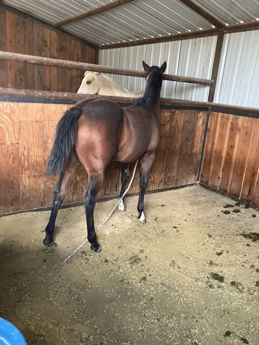 Petra is a yearling filly. She is AQHA registered running cow bred. She is great on halter with 45 days desensitizing groundwork. She is extremely smart with a great mind. Both the stallion and mare are awesome using horses being top mounts. We also own a 3 year old brother to her and he is providing to be great
