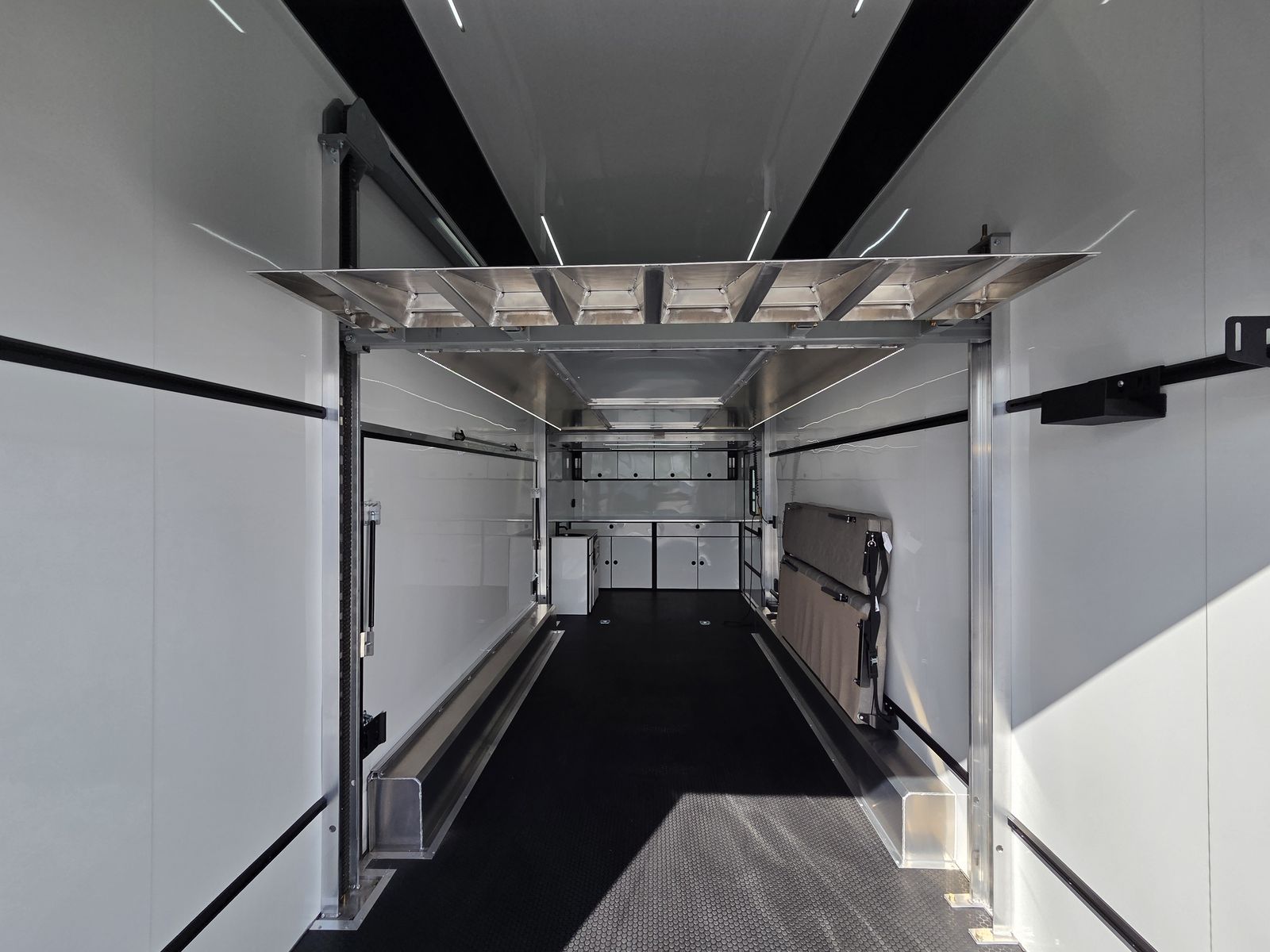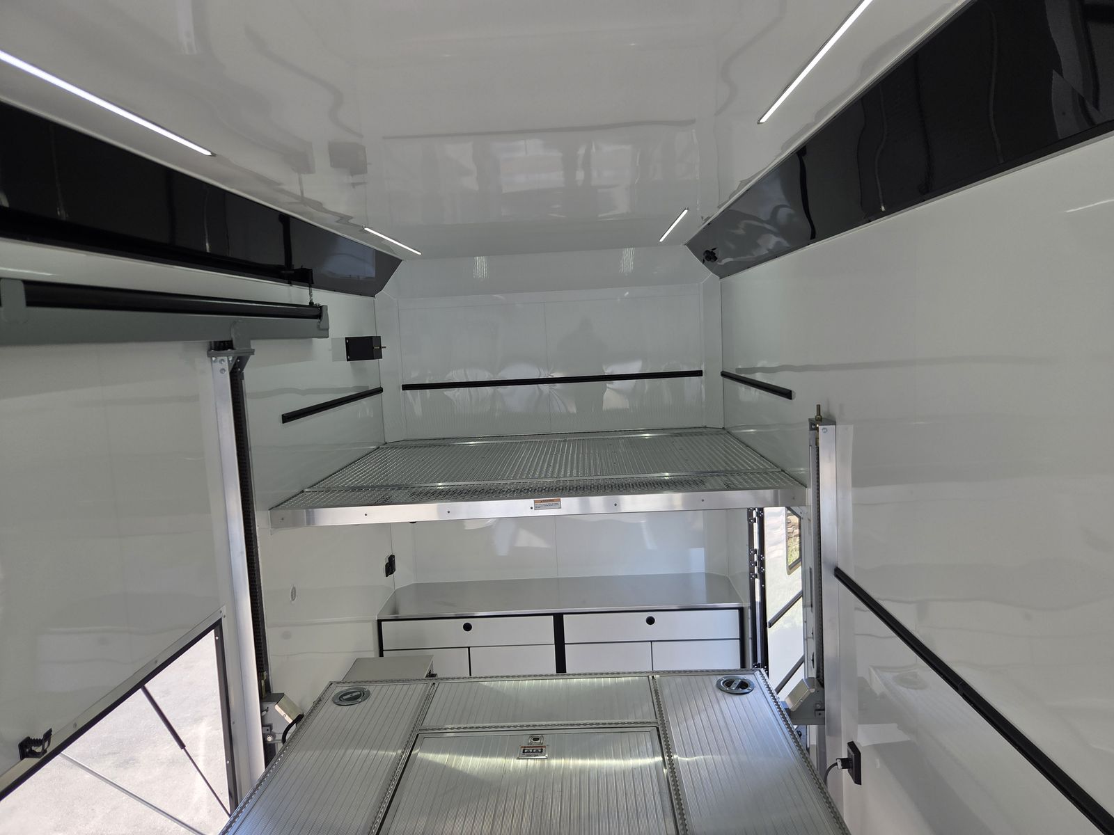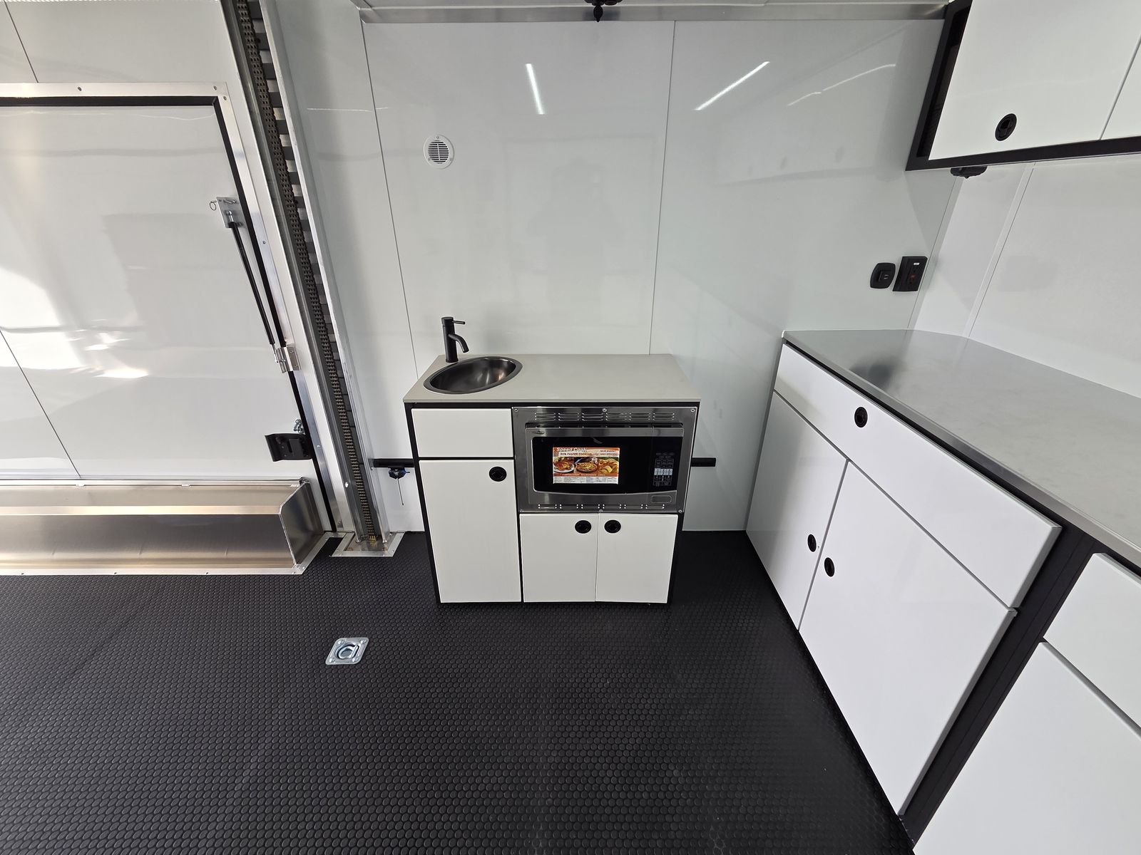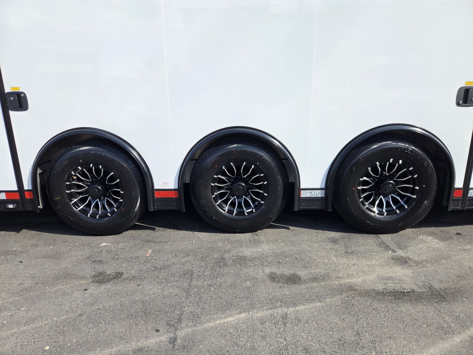 Axle Rating (3) 6,000 lb GVWR 19,800 lb Curb Weight: 7,600 lb Payload 12,200 lb Axle Type Torsion Overall Length 31' 3 1/8" Overall Width 102" Overall Height 13' 5" Interior Length 26' 2" Interior Width 97 5/8" Interior Height 135" Minimum Ground Clearance 9 3/4" Rear Door Opening Width 90" Rear Door Opening Height 90" Tongue Length to Center of Ball 62" Center of Coupler to Corner Radius 88" Width Between Wheel Wells 80" Brakes 6 Wheel Electric Tire Size 235/80/16 LRE Hitch Height to Top of Ball 20 15/16" Hitch Ball Size 2 5/16" Floor Crossmembers 16" OC Wall Studs 16" OC Ceiling Crossmembers 16" OC Frame Features Spread Axle w/ Axle Kickdown Trim 16” Wheel – 8 Lug Aluminum Rim Extended Tongue 16” O/C – Sidewalls 16” O/C Floor – Chassis 16” O/C 1” x 2” – Roof Members 6,000 lb Rear Ramp Door Transition Flap – 16" Black Coin Flooring Stainless Steel Rear Paddle Latches (on Ramp Door) Bogey Wheels 4 Bolt Coupler – Flat Front Tongue Winch Plate Interior Height 11’ 4” Pod Jacks – Stabilizing Aluminum Spare Tire & Mount Girard Lateral Arm Prep for 20’ Awning Hydraulic Tongue Jack Exterior Features ATP Gravel Guard (48”) Screwless Exterior (0.050”) Metal Rear Spoiler with LED Lights One-Piece Aluminum Roof DOT Tape BLACKOUT Trim Pkg Mid Ship Lights and Turn Signals Color Matched – Rear Header Wired Rear Camera Prep Interior Features Black TPO Floor and Ramp Aluminum Walls and Ceiling – (0.030”) – White 0.125” ATP Attic Attic Tiedowns – 4-Rope Rings 48” Entry Door – 26’ Model Slide-In/Slide-Out Step Upper and Lower Cabinets LED Strip Lighting (Under Cab and Lift) Premium Escape Door – 72” Stacker Cove – Black 50 Amp Breaker Box with Converter (3) Interior Outlets (2) Curbside Scene Lights (2) 14” LED Light – Under Attic With Switch (3) Lithium Batteries (6) 14” LED Ceiling Lights – (2) 3-Way Switches 14' Stacker Lift With Removable Inserts Stacker Lift Control – Wall Mounted Front & Rear Tongue Mounted Generator Storage Box LifeTrac Cabinet Base with Sink/Fresh Water/Pump and Microwave Rollover/Jacknife Sofa for those Weekend Warrior Trips!! Sleeps 4!!! (Use the loft area for a queen bed!) 10 YR LIMITED STRUCTURAL WARRANTY 3 YR LIMITED WARRANTY 1 YR LIMITED WARRANTY