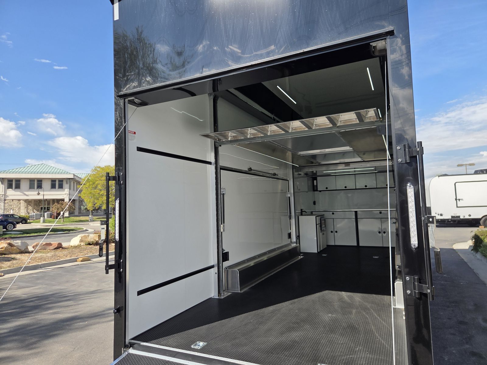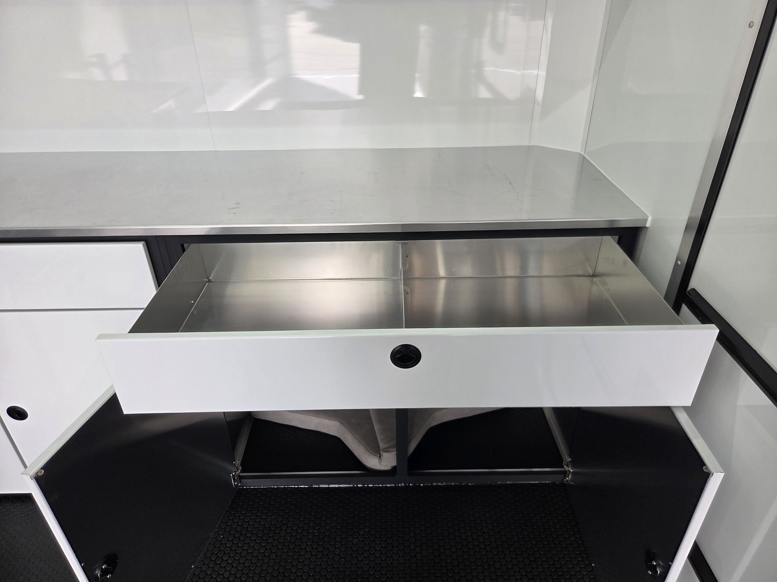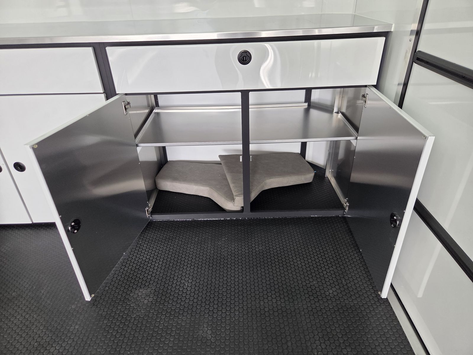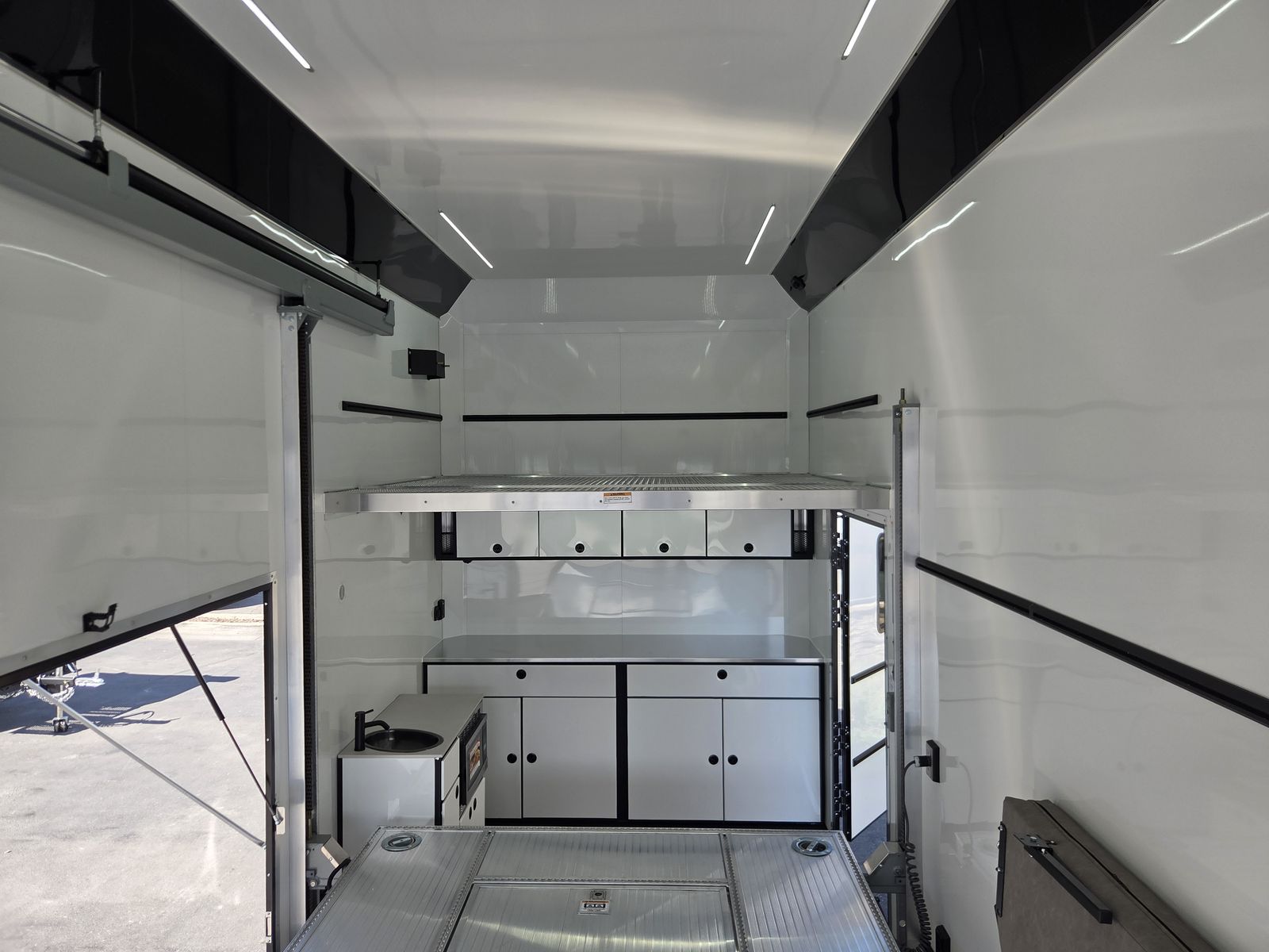 Axle Rating (3) 6,000 lb GVWR 19,800 lb Curb Weight: 7,600 lb Payload 12,200 lb Axle Type Torsion Overall Length 31' 3 1/8" Overall Width 102" Overall Height 13' 5" Interior Length 26' 2" Interior Width 97 5/8" Interior Height 135" Minimum Ground Clearance 9 3/4" Rear Door Opening Width 90" Rear Door Opening Height 90" Tongue Length to Center of Ball 62" Center of Coupler to Corner Radius 88" Width Between Wheel Wells 80" Brakes 6 Wheel Electric Tire Size 235/80/16 LRE Hitch Height to Top of Ball 20 15/16" Hitch Ball Size 2 5/16" Floor Crossmembers 16" OC Wall Studs 16" OC Ceiling Crossmembers 16" OC Frame Features Spread Axle w/ Axle Kickdown Trim 16” Wheel – 8 Lug Aluminum Rim Extended Tongue 16” O/C – Sidewalls 16” O/C Floor – Chassis 16” O/C 1” x 2” – Roof Members 6,000 lb Rear Ramp Door Transition Flap – 16" Black Coin Flooring Stainless Steel Rear Paddle Latches (on Ramp Door) Bogey Wheels 4 Bolt Coupler – Flat Front Tongue Winch Plate Interior Height 11’ 4” Pod Jacks – Stabilizing Aluminum Spare Tire & Mount Girard Lateral Arm Prep for 20’ Awning Hydraulic Tongue Jack Exterior Features ATP Gravel Guard (48”) Screwless Exterior (0.050”) Metal Rear Spoiler with LED Lights One-Piece Aluminum Roof DOT Tape BLACKOUT Trim Pkg Mid Ship Lights and Turn Signals Color Matched – Rear Header Wired Rear Camera Prep Interior Features Black TPO Floor and Ramp Aluminum Walls and Ceiling – (0.030”) – White 0.125” ATP Attic Attic Tiedowns – 4-Rope Rings 48” Entry Door – 26’ Model Slide-In/Slide-Out Step Upper and Lower Cabinets LED Strip Lighting (Under Cab and Lift) Premium Escape Door – 72” Stacker Cove – Black 50 Amp Breaker Box with Converter (3) Interior Outlets (2) Curbside Scene Lights (2) 14” LED Light – Under Attic With Switch (3) Lithium Batteries (6) 14” LED Ceiling Lights – (2) 3-Way Switches 14' Stacker Lift With Removable Inserts Stacker Lift Control – Wall Mounted Front & Rear Tongue Mounted Generator Storage Box LifeTrac Cabinet Base with Sink/Fresh Water/Pump and Microwave Rollover/Jacknife Sofa for those Weekend Warrior Trips!! Sleeps 4!!! (Use the loft area for a queen bed!) 10 YR LIMITED STRUCTURAL WARRANTY 3 YR LIMITED WARRANTY 1 YR LIMITED WARRANTY