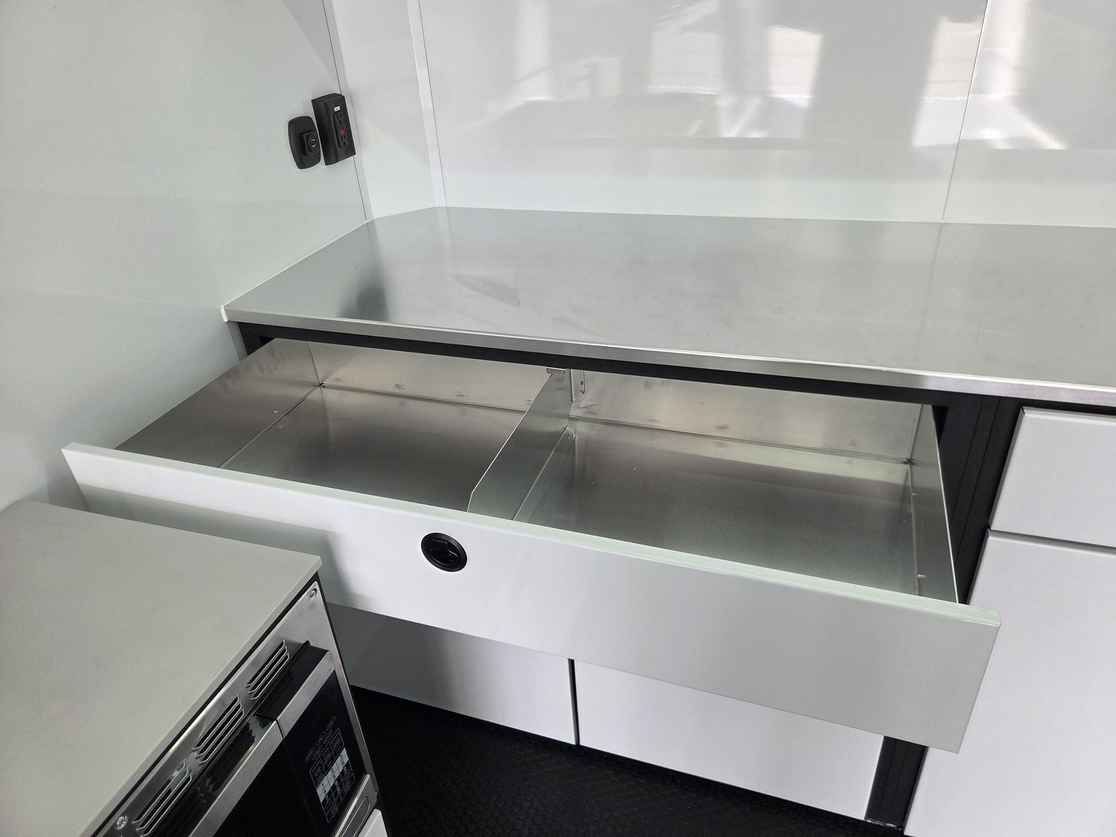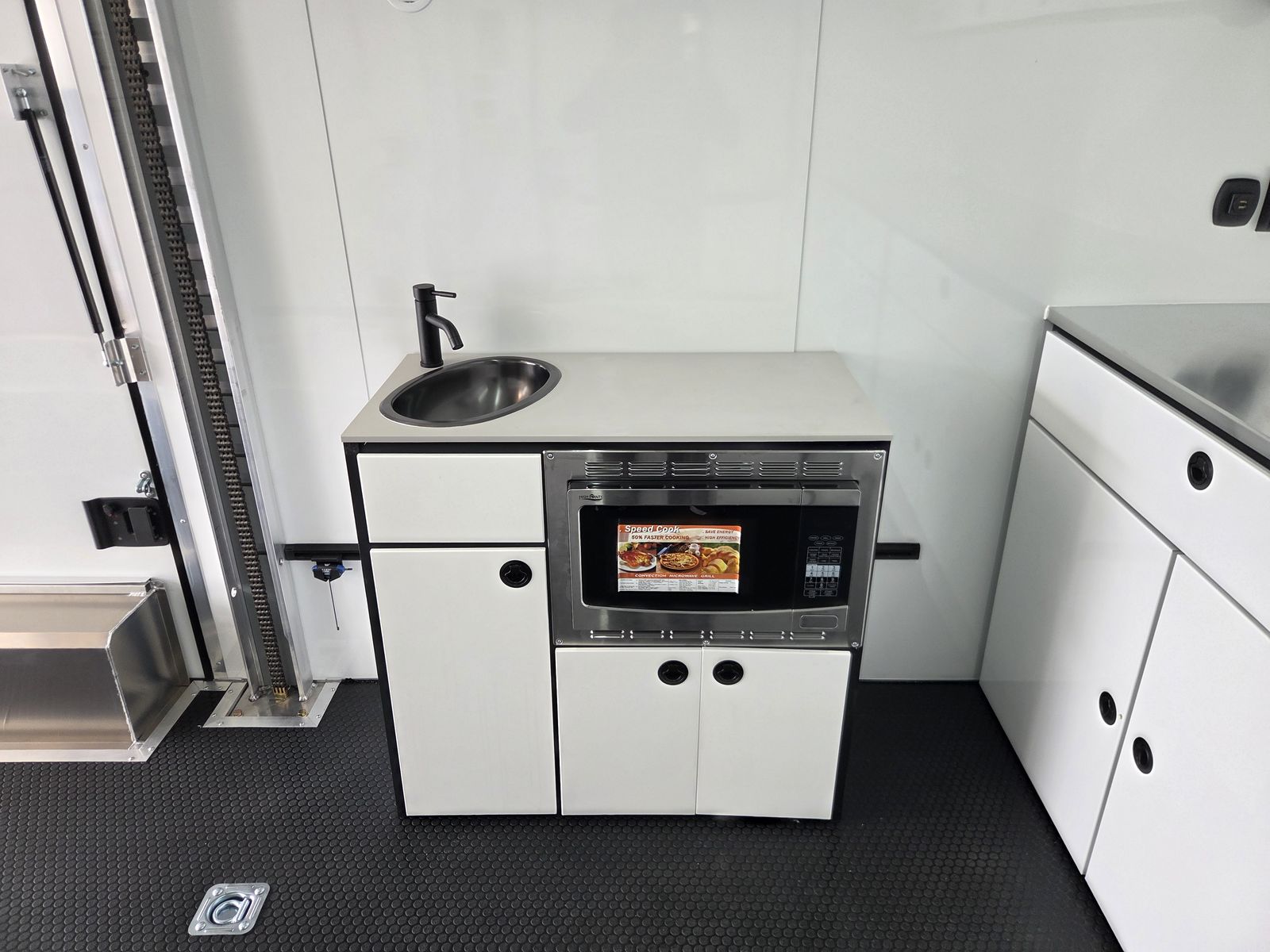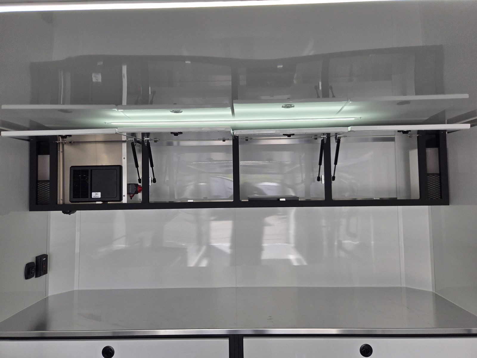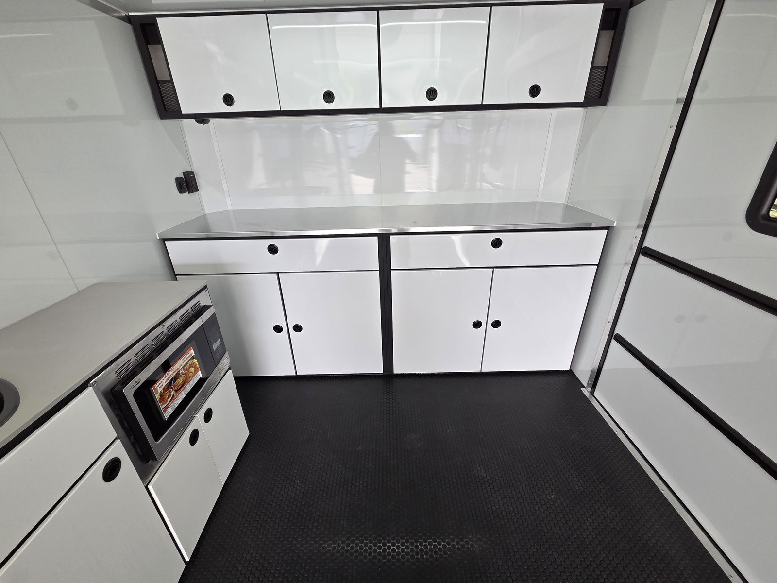 Axle Rating (3) 6,000 lb GVWR 19,800 lb Curb Weight: 7,600 lb Payload 12,200 lb Axle Type Torsion Overall Length 31' 3 1/8" Overall Width 102" Overall Height 13' 5" Interior Length 26' 2" Interior Width 97 5/8" Interior Height 135" Minimum Ground Clearance 9 3/4" Rear Door Opening Width 90" Rear Door Opening Height 90" Tongue Length to Center of Ball 62" Center of Coupler to Corner Radius 88" Width Between Wheel Wells 80" Brakes 6 Wheel Electric Tire Size 235/80/16 LRE Hitch Height to Top of Ball 20 15/16" Hitch Ball Size 2 5/16" Floor Crossmembers 16" OC Wall Studs 16" OC Ceiling Crossmembers 16" OC Frame Features Spread Axle w/ Axle Kickdown Trim 16” Wheel – 8 Lug Aluminum Rim Extended Tongue 16” O/C – Sidewalls 16” O/C Floor – Chassis 16” O/C 1” x 2” – Roof Members 6,000 lb Rear Ramp Door Transition Flap – 16" Black Coin Flooring Stainless Steel Rear Paddle Latches (on Ramp Door) Bogey Wheels 4 Bolt Coupler – Flat Front Tongue Winch Plate Interior Height 11’ 4” Pod Jacks – Stabilizing Aluminum Spare Tire & Mount Girard Lateral Arm Prep for 20’ Awning Hydraulic Tongue Jack Exterior Features ATP Gravel Guard (48”) Screwless Exterior (0.050”) Metal Rear Spoiler with LED Lights One-Piece Aluminum Roof DOT Tape BLACKOUT Trim Pkg Mid Ship Lights and Turn Signals Color Matched – Rear Header Wired Rear Camera Prep Interior Features Black TPO Floor and Ramp Aluminum Walls and Ceiling – (0.030”) – White 0.125” ATP Attic Attic Tiedowns – 4-Rope Rings 48” Entry Door – 26’ Model Slide-In/Slide-Out Step Upper and Lower Cabinets LED Strip Lighting (Under Cab and Lift) Premium Escape Door – 72” Stacker Cove – Black 50 Amp Breaker Box with Converter (3) Interior Outlets (2) Curbside Scene Lights (2) 14” LED Light – Under Attic With Switch (3) Lithium Batteries (6) 14” LED Ceiling Lights – (2) 3-Way Switches 14' Stacker Lift With Removable Inserts Stacker Lift Control – Wall Mounted Front & Rear Tongue Mounted Generator Storage Box LifeTrac Cabinet Base with Sink/Fresh Water/Pump and Microwave Rollover/Jacknife Sofa for those Weekend Warrior Trips!! Sleeps 4!!! (Use the loft area for a queen bed!) 10 YR LIMITED STRUCTURAL WARRANTY 3 YR LIMITED WARRANTY 1 YR LIMITED WARRANTY