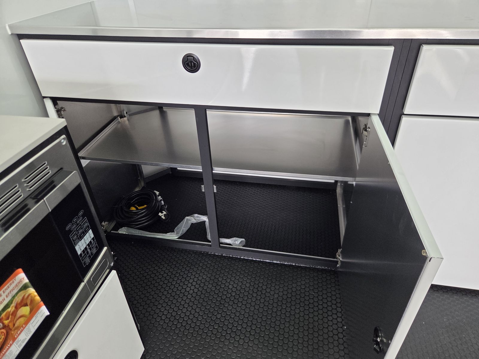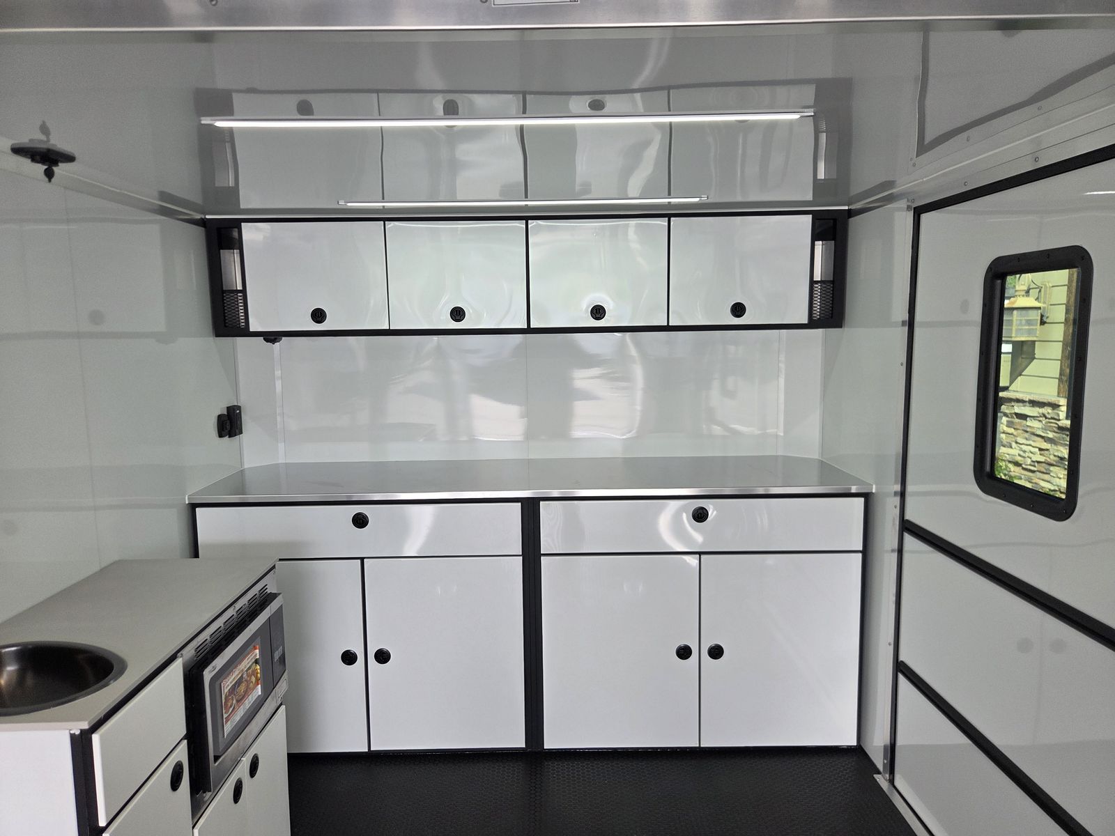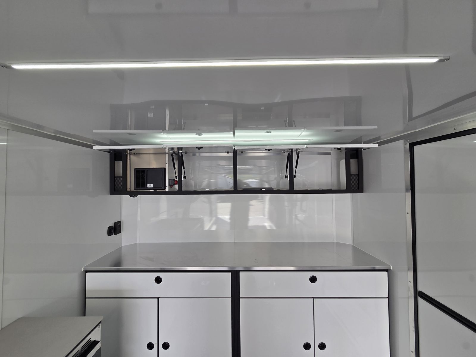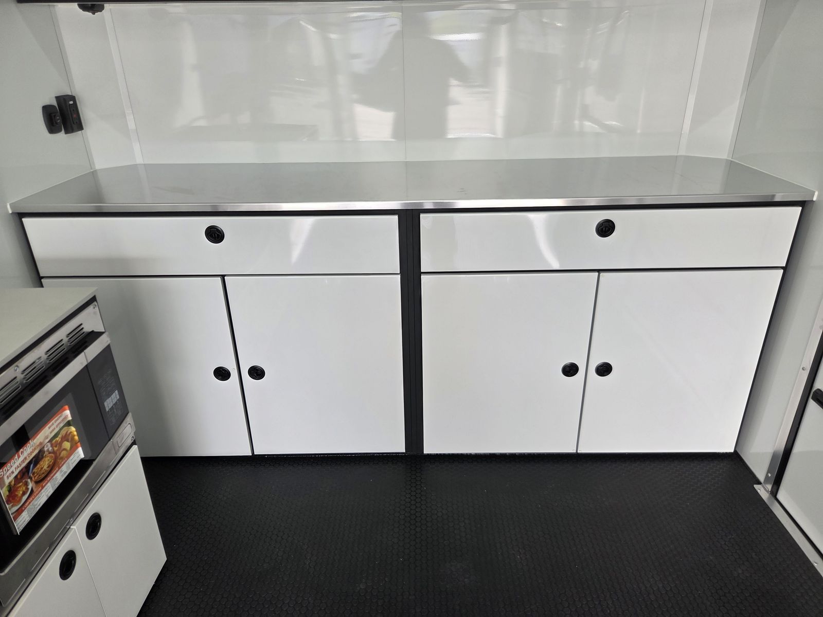 Axle Rating (3) 6,000 lb GVWR 19,800 lb Curb Weight: 7,600 lb Payload 12,200 lb Axle Type Torsion Overall Length 31' 3 1/8" Overall Width 102" Overall Height 13' 5" Interior Length 26' 2" Interior Width 97 5/8" Interior Height 135" Minimum Ground Clearance 9 3/4" Rear Door Opening Width 90" Rear Door Opening Height 90" Tongue Length to Center of Ball 62" Center of Coupler to Corner Radius 88" Width Between Wheel Wells 80" Brakes 6 Wheel Electric Tire Size 235/80/16 LRE Hitch Height to Top of Ball 20 15/16" Hitch Ball Size 2 5/16" Floor Crossmembers 16" OC Wall Studs 16" OC Ceiling Crossmembers 16" OC Frame Features Spread Axle w/ Axle Kickdown Trim 16” Wheel – 8 Lug Aluminum Rim Extended Tongue 16” O/C – Sidewalls 16” O/C Floor – Chassis 16” O/C 1” x 2” – Roof Members 6,000 lb Rear Ramp Door Transition Flap – 16" Black Coin Flooring Stainless Steel Rear Paddle Latches (on Ramp Door) Bogey Wheels 4 Bolt Coupler – Flat Front Tongue Winch Plate Interior Height 11’ 4” Pod Jacks – Stabilizing Aluminum Spare Tire & Mount Girard Lateral Arm Prep for 20’ Awning Hydraulic Tongue Jack Exterior Features ATP Gravel Guard (48”) Screwless Exterior (0.050”) Metal Rear Spoiler with LED Lights One-Piece Aluminum Roof DOT Tape BLACKOUT Trim Pkg Mid Ship Lights and Turn Signals Color Matched – Rear Header Wired Rear Camera Prep Interior Features Black TPO Floor and Ramp Aluminum Walls and Ceiling – (0.030”) – White 0.125” ATP Attic Attic Tiedowns – 4-Rope Rings 48” Entry Door – 26’ Model Slide-In/Slide-Out Step Upper and Lower Cabinets LED Strip Lighting (Under Cab and Lift) Premium Escape Door – 72” Stacker Cove – Black 50 Amp Breaker Box with Converter (3) Interior Outlets (2) Curbside Scene Lights (2) 14” LED Light – Under Attic With Switch (3) Lithium Batteries (6) 14” LED Ceiling Lights – (2) 3-Way Switches 14' Stacker Lift With Removable Inserts Stacker Lift Control – Wall Mounted Front & Rear Tongue Mounted Generator Storage Box LifeTrac Cabinet Base with Sink/Fresh Water/Pump and Microwave Rollover/Jacknife Sofa for those Weekend Warrior Trips!! Sleeps 4!!! (Use the loft area for a queen bed!) 10 YR LIMITED STRUCTURAL WARRANTY 3 YR LIMITED WARRANTY 1 YR LIMITED WARRANTY