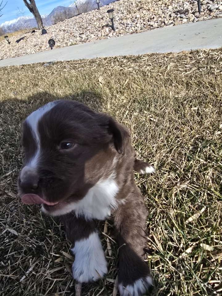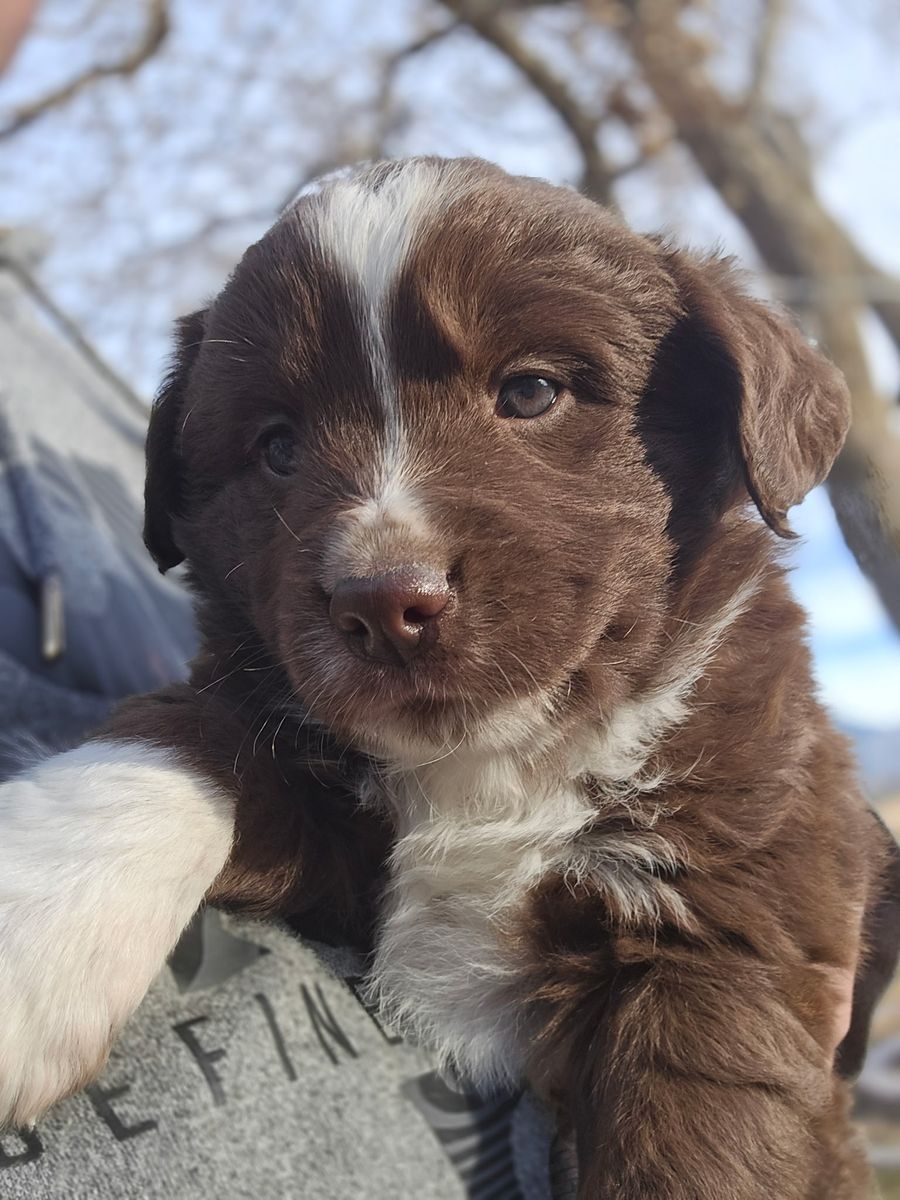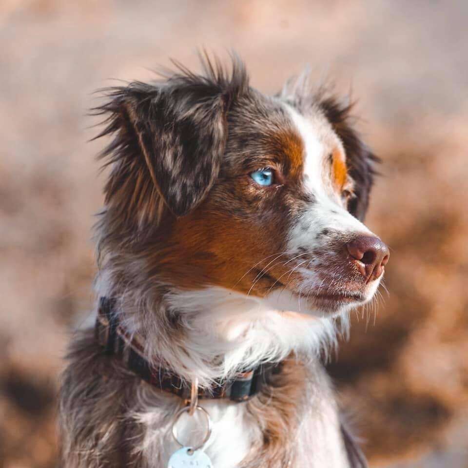 Cinna (Cinnamon) (Dam) mom is a Red Bi (2 blue eyes) ASDR (American Stock Dog Registry) registered american shepherd (AKA: mini aussie).