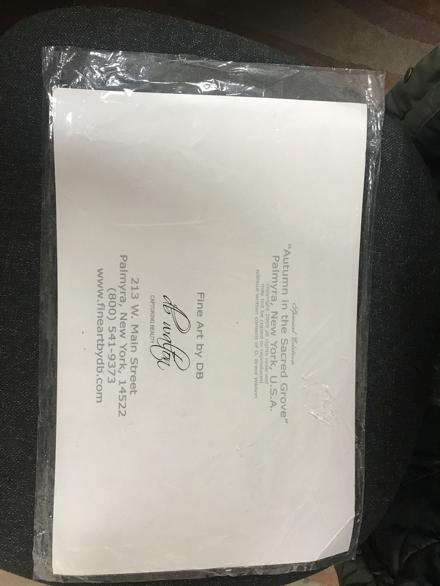 "Autumn in the Sacred Grove" is a fine art painting depicting the historic grove in Palmyra, New York, where Joseph Smith is believed to have received the First Vision. The artwork captures the serene, vibrant colors of the forest during fall, emphasizing a peaceful and reflective atmosphere.