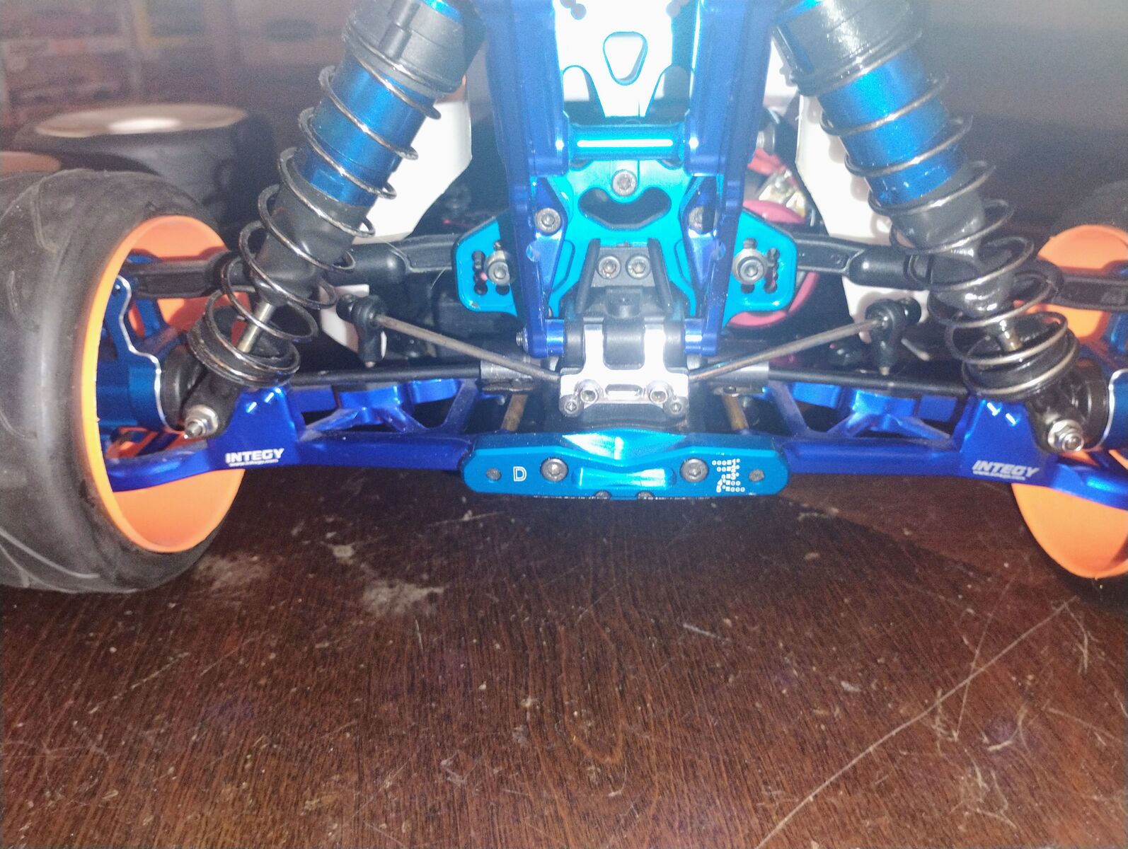 I have a sweet Team Associated RC8.1 Buggy in excellent condition. I put a lot of restoration into this buggy. The front suspension is all aluminum. The camber blocks are aluminum and are extremely rare. When I found these, I paid $150.00 for 1 pair of which they did not include the bushings.The bushings were found and I paid $35 for a set of four with the screws The steering knuckles were just as hard to find and these only work with these camber blocks. I also paid $90 for 1 pair of these.The blue aluminum (Front) shock tower is an extremely rare part to acquire of which I paid $50. The suspension arms were a bit more available. The body was once sold through Amain Hobbies but, has since become unavailable.