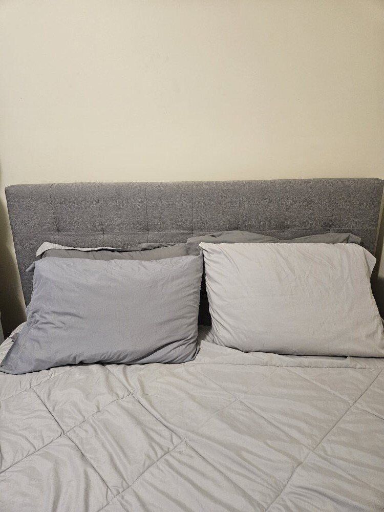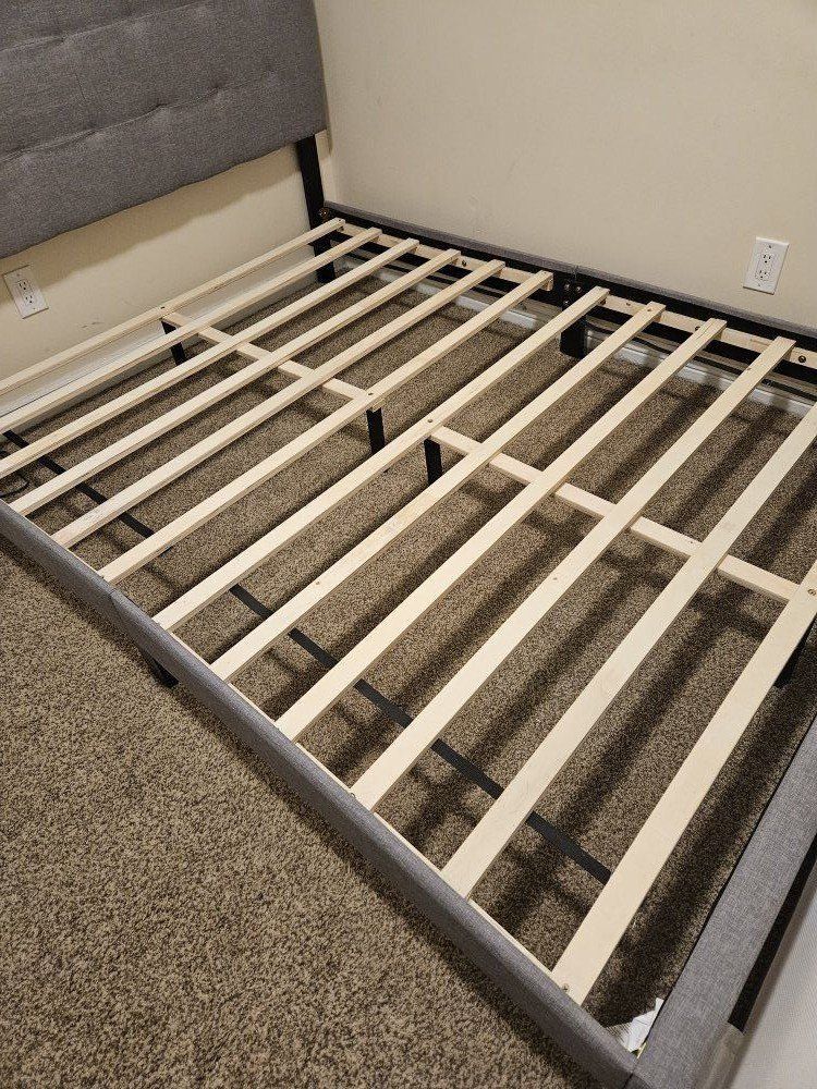 VenmoQueen size upholstered headboard with frame. Mattress available, if interested.