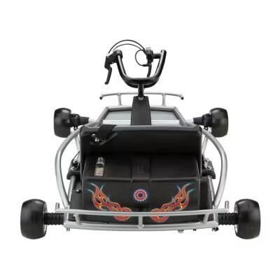 Go-karts are cool the ground force has combined classic kart-styling, low-profile and sturdy steel construction with great maneuverability and enhanced steering. With powerful speeds of up to 12 mph 19 km/h, this electric go-kart is a force to be reckoned with featuring solid rubber tires with molded aluminum rims, bucket-style seat with shoulder strap, and hand-operated rear brake.