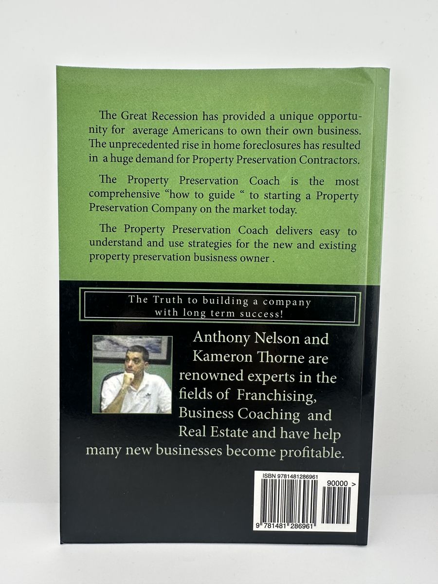 ApplePayThe Property Preservation Coach by Anthony Nelson. Paperback business guide to starting and growing a property preservation company. Printed 2020. Real estate entrepreneur resource.