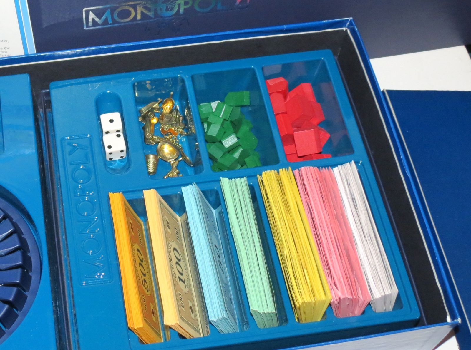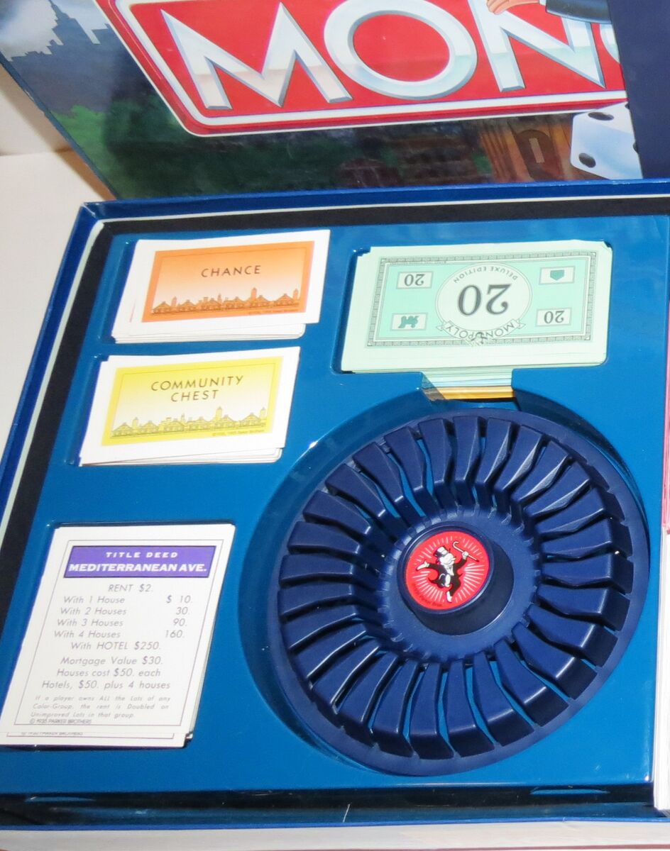 VenmoMissing 2 of the 11 gold tokens, otherwise complete and ready to play! Noticed 1 railroad propery card is wrinkled, rest are good. Box has some wear at corners and along some edges, but no split corners.