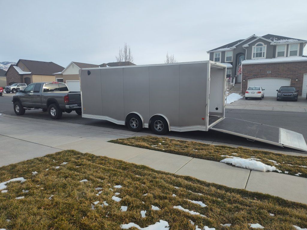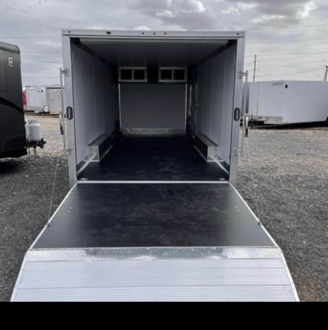 2022 EZ HAULER TRAILER. ALUMINUM CAR HAULER WITH FINISHED INTERIOR WITH RUBBER COIN FLOORING. VERY NICE TOP QUALITY TRAILER. SPREAD TORSION AXLE TOWS LIKE A DREAM. LED LIGHTING TOP CABINETS. COME TAKE A LOOK!