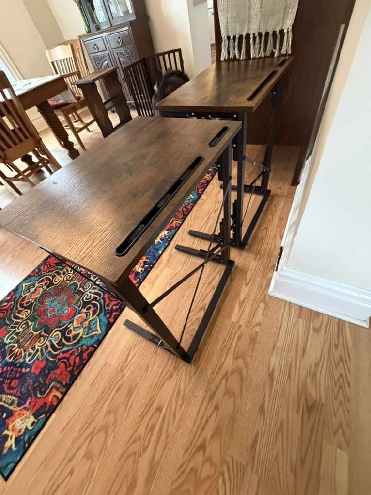 VenmoThese are nice TV trays. They are sturdy. Measure 14.5” D x 21” W x 29” H They have slots for iPad and phone