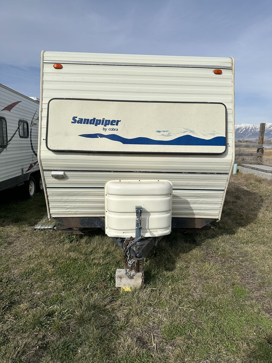 VenmoReduced price from $2500. 1995 Cobra Sandpiper. Inside is in good shape. Needs work. Full memory queen foam matress up front. I bought the trailer for use in a hunting camp, over Winter. Heat, stove, microwave, fridge, A/C all work. I have never used the plumbing or water, to avoid pipes freezing. I haven't pulled out the awning. Everything was working when I bought it. This will need some work that my health, time and space won't allow at this time. I have primer and sealant to do the roof( $250). I just replaced one of the skylights. Seats are fine, no holes. Time for new window covers, drapes are done for (they're ugly anyway).