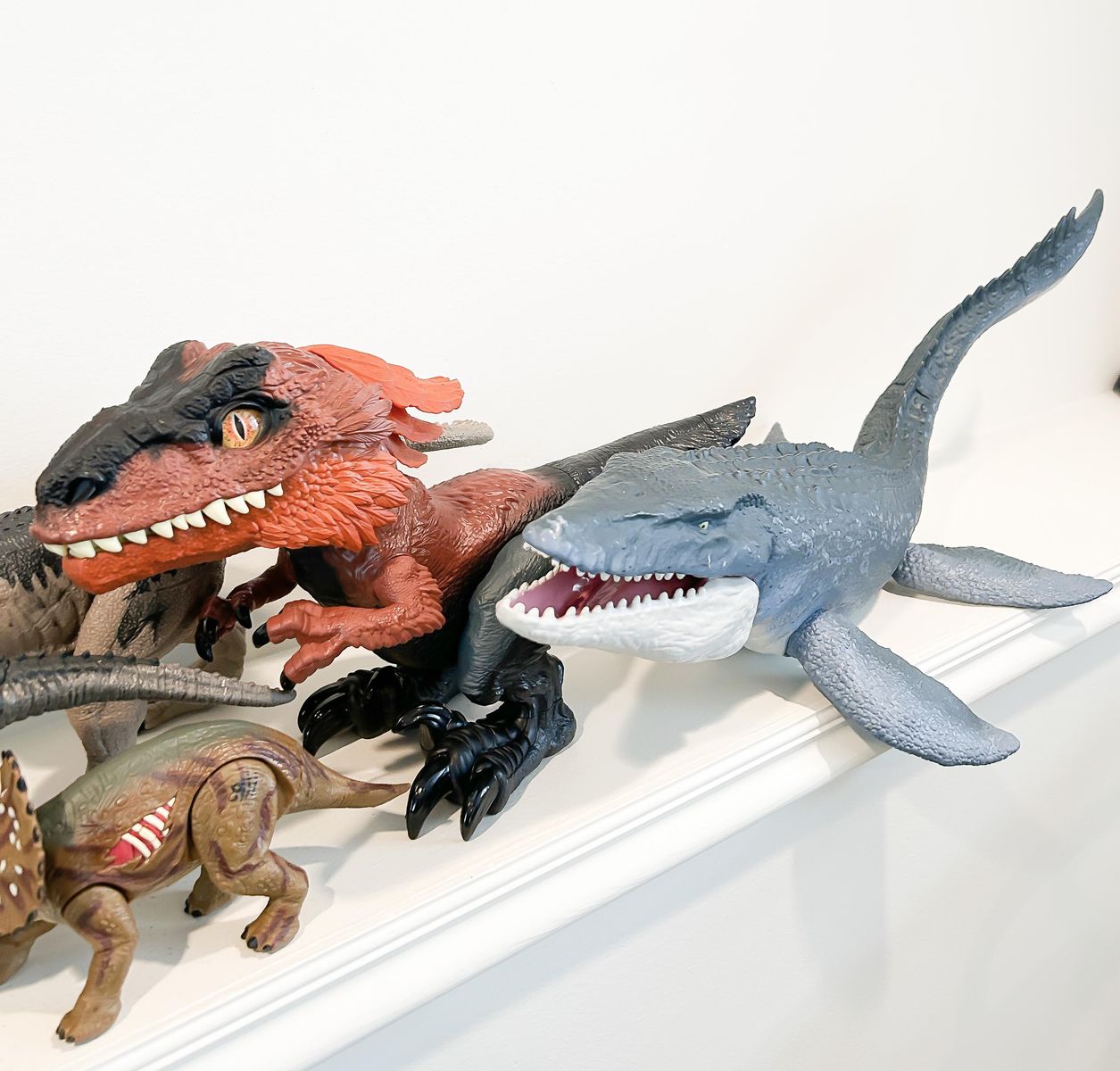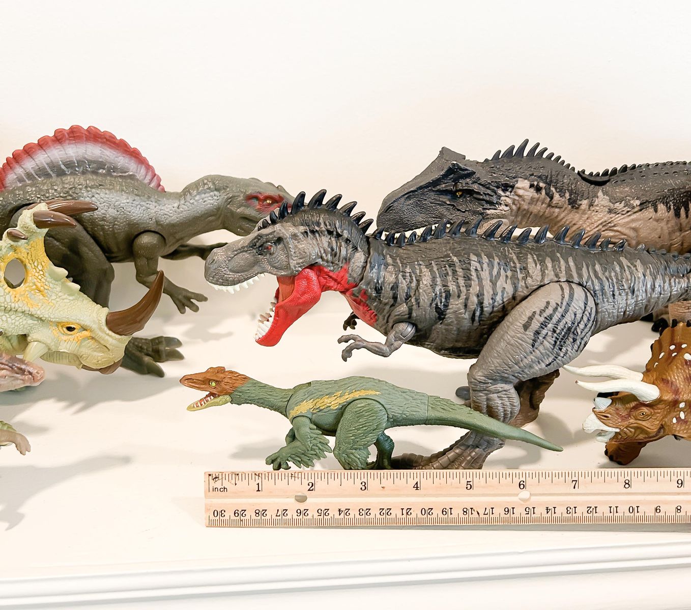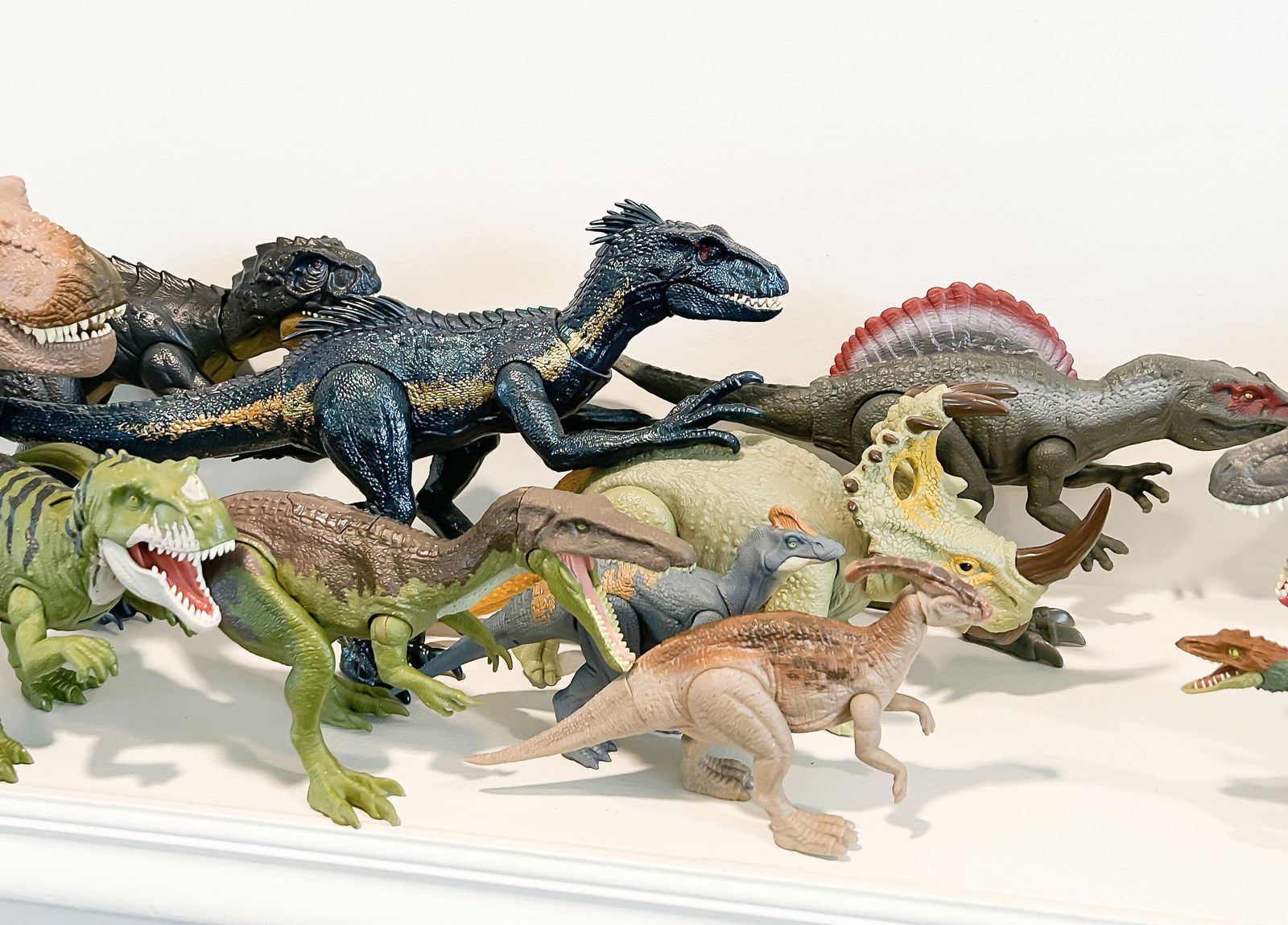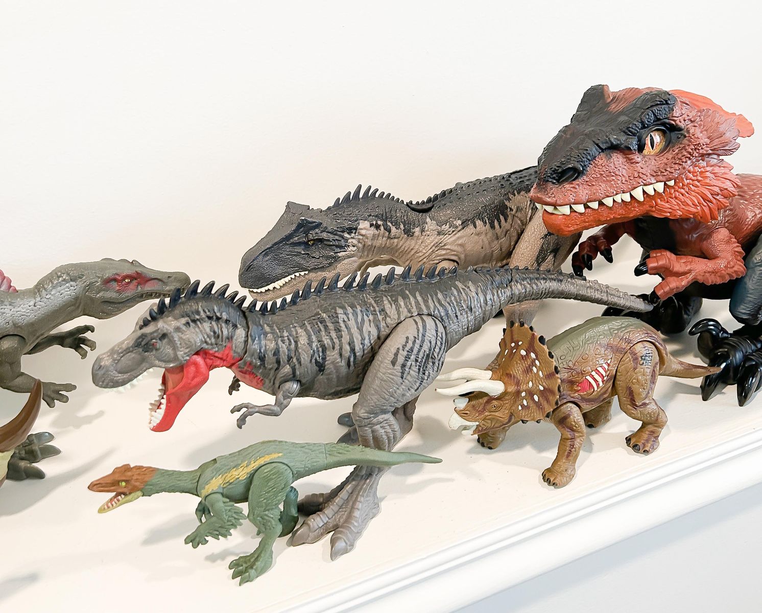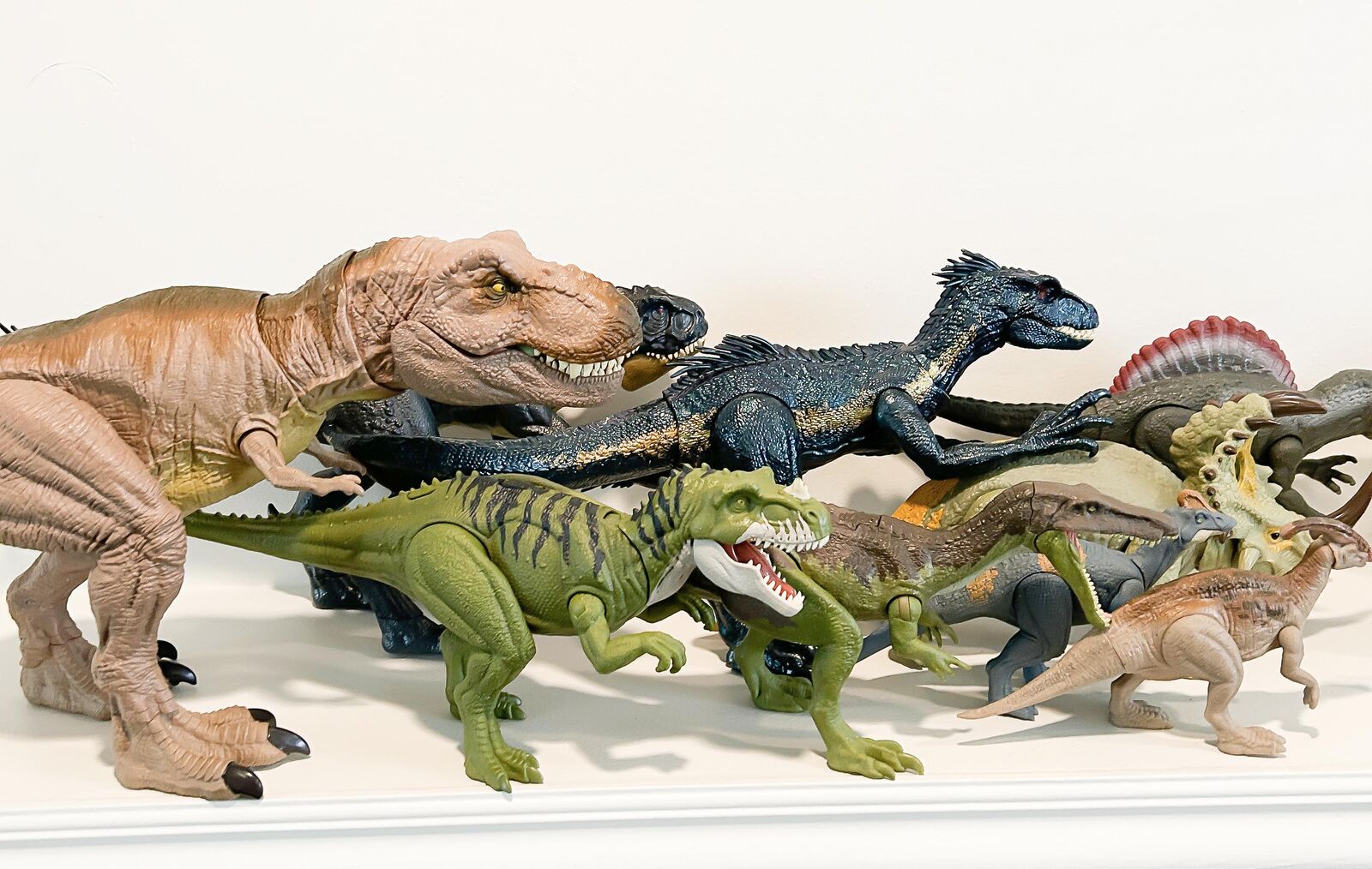 Venmo15 dinosaurs in total of different sizes from Jurassic World; many of these make sounds and one even lights up and moves.