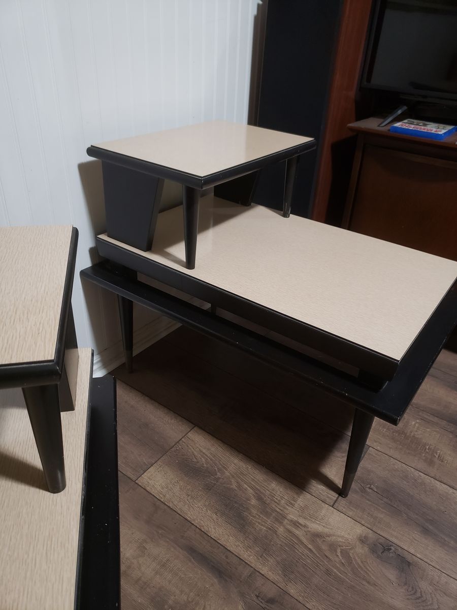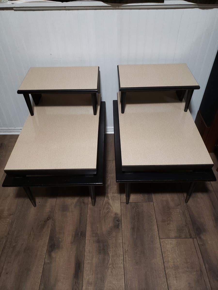 1950's Mid-Century End Table set in fantastic condition. These tables are very sturdy and have a that unique Atomic-Age style. 1st $100.00 takes them home. Call 385 542-8937 Thank You.