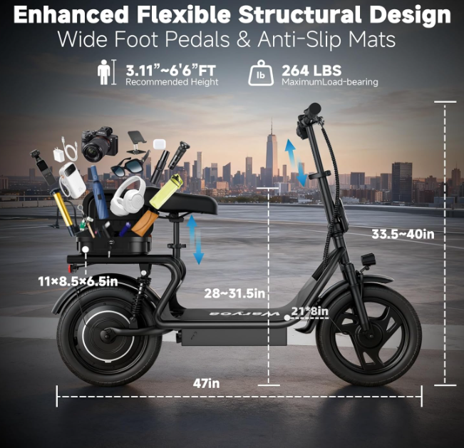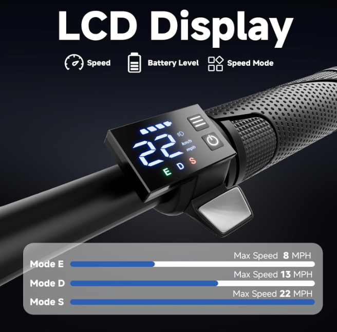 Zelle22 MPH Max Speed with 500W Motor— Equipped with a powerful 500W motor, this electric scooter delivers steady. Zip through commutes at a max speed of 22 mph. Motor’s robust torque output conquers 15° slopes, ideal for running errands, exploring the city, or casual cruises.