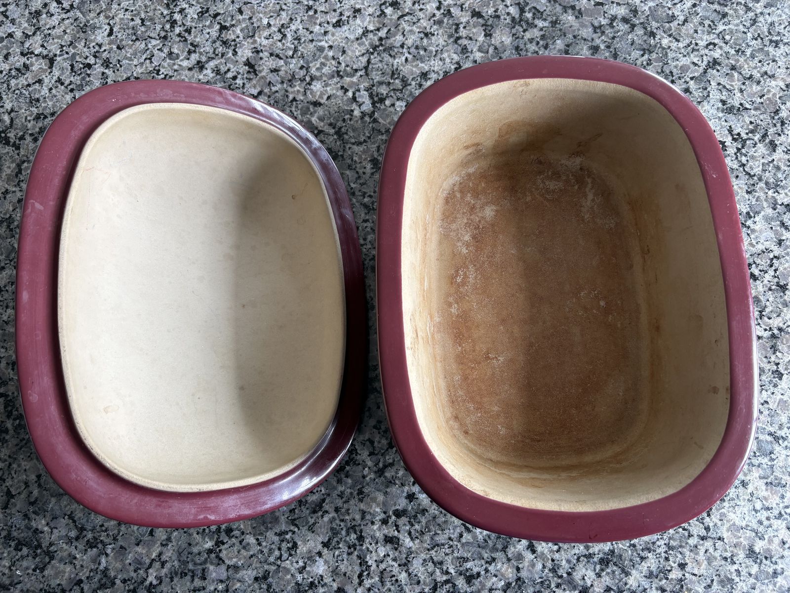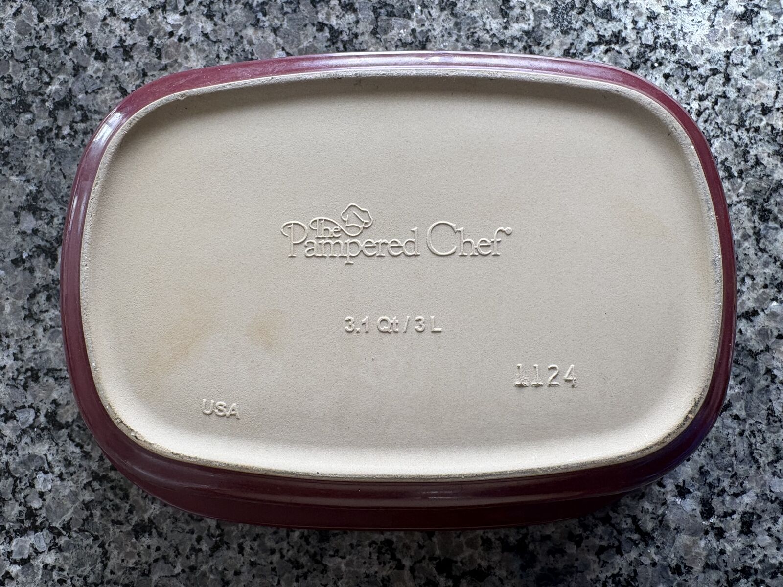 3.1 Qt/3 L Pampered Chef Deep Covered Baker. Stone is already seasoned, allowing food to more easily release from it. Stone bakeware bakes food evenly, so the bottom doesn't burn.