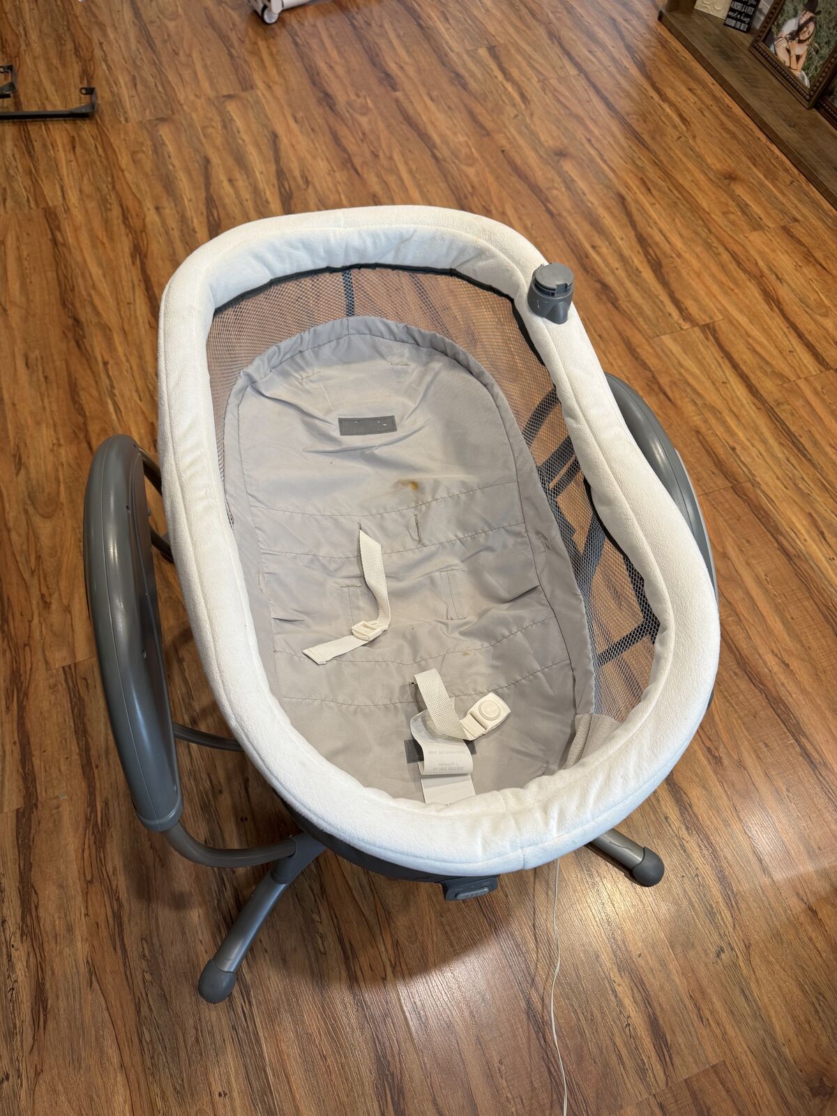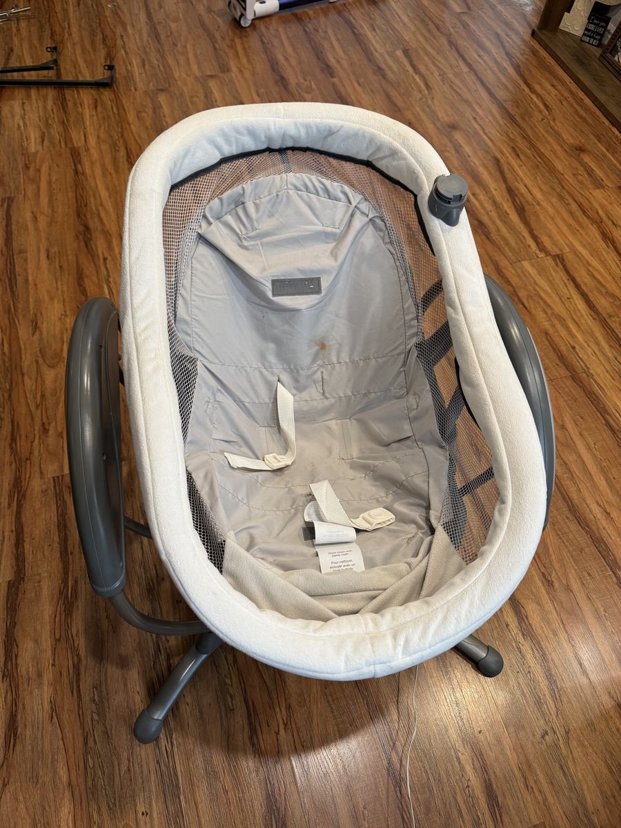 Features: • Gentle rocking motion • Multiple soothing sounds and lullabies • Volume control • Timer settings • Recline option • Breathable mesh sides for airflow