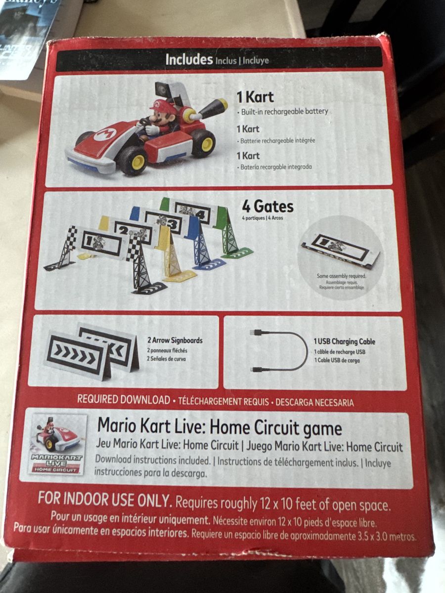 Real-Life Racing: Control a physical Mario Kart using your Nintendo Switch system, bringing the iconic game into your home environment. Augmented Course: Design custom race tracks within your living space by strategically placing gates, with the race visually rendered on your screen in augmented reality. Interactive Kart: The physical kart dynamically responds to in-game actions, including boosts, item impacts, and drifts, enhancing the immersive experience. Unlockable Content: Progress through the game to unlock new in-game environments, additional gates, character costumes, and other customizable elements. Multiplayer Capability: Up to four players can race simultaneously in the same household, though additional games, Nintendo Switch systems, and karts are required and sold separately. Integrated Camera: The included kart features a built-in camera that works in conjunction with your Nintendo Switch to transform your room into a dynamic Mario Kart circuit. Revolutionary Gaming: Experience a unique fusion of physical realism and digital gaming, offering an innovative way to play Mario Kart within your own home. Mario Kart Live: Home Circuit - Mario Set is a revolutionary gaming experience that brings the thrill of Mario Kart into your living room. This unique set includes a kart with a built-in camera that works in conjunction with your Nintendo Switch to transform your room into a dynamic Mario Kart circuit. Experience a fusion of realism and gaming like never before, right in the comfort of your own home. Use your Nintendo Switch system to control a real-life Mario Kart Create a course in your home by placing gates and watch the race come to life on screen in augmented reality The kart will react as you boost, hit items and drift around the course Unlock in-game environments, gates, costumes and more as you play Up to 4 players can race around the house together (additional games, systems and karts required; sold separately)