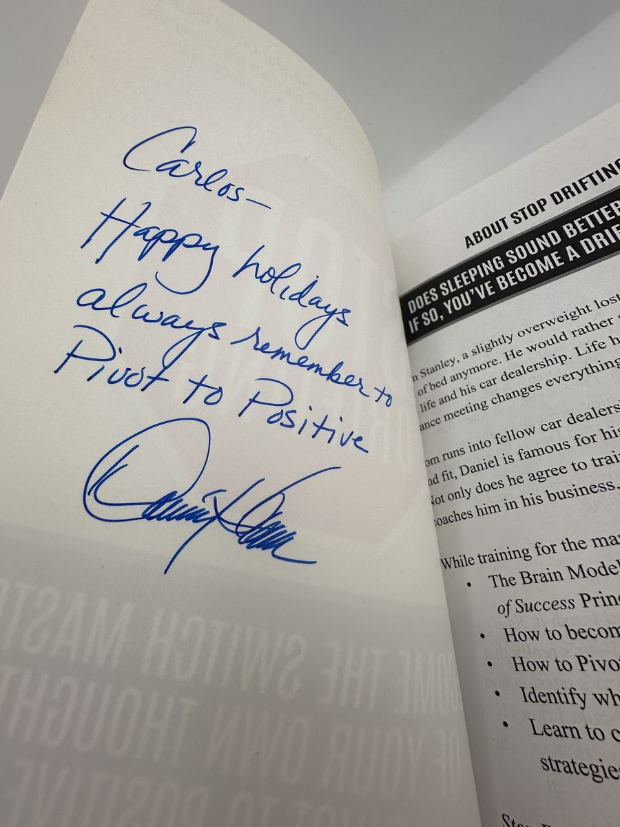 ApplePaySigned copy of Stop Drifting by David R. Ibarra (2020). Paperback self-help/leadership book. Personalized inscription to “Carlos.” Great motivational read.