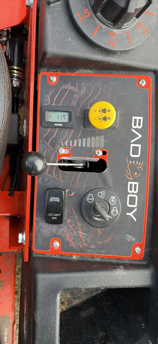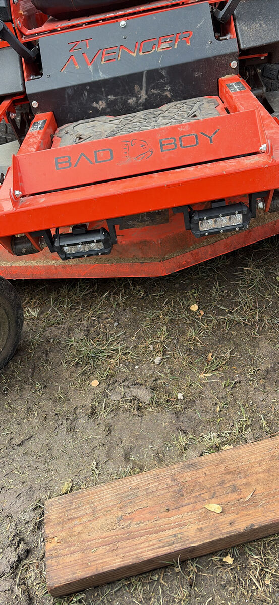 VenmoHonestly the best mower I have ever used. Strong and light, very fast and cuts like none other. Lightly used Bad Boy Avenger 54 deck 23 horse motor. This comes with factory lights and additional 2 8000 lumen light bars. These lights are so nice because they let you see everything you mow! Has a striping kit and a mulch kit. Comes with 3 extra blades. Low hours, 120. One year old. All maintenance done, ethanol free or 91 octane used. Come give it a test ride so you can start earning money!