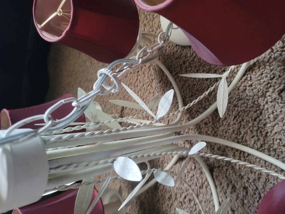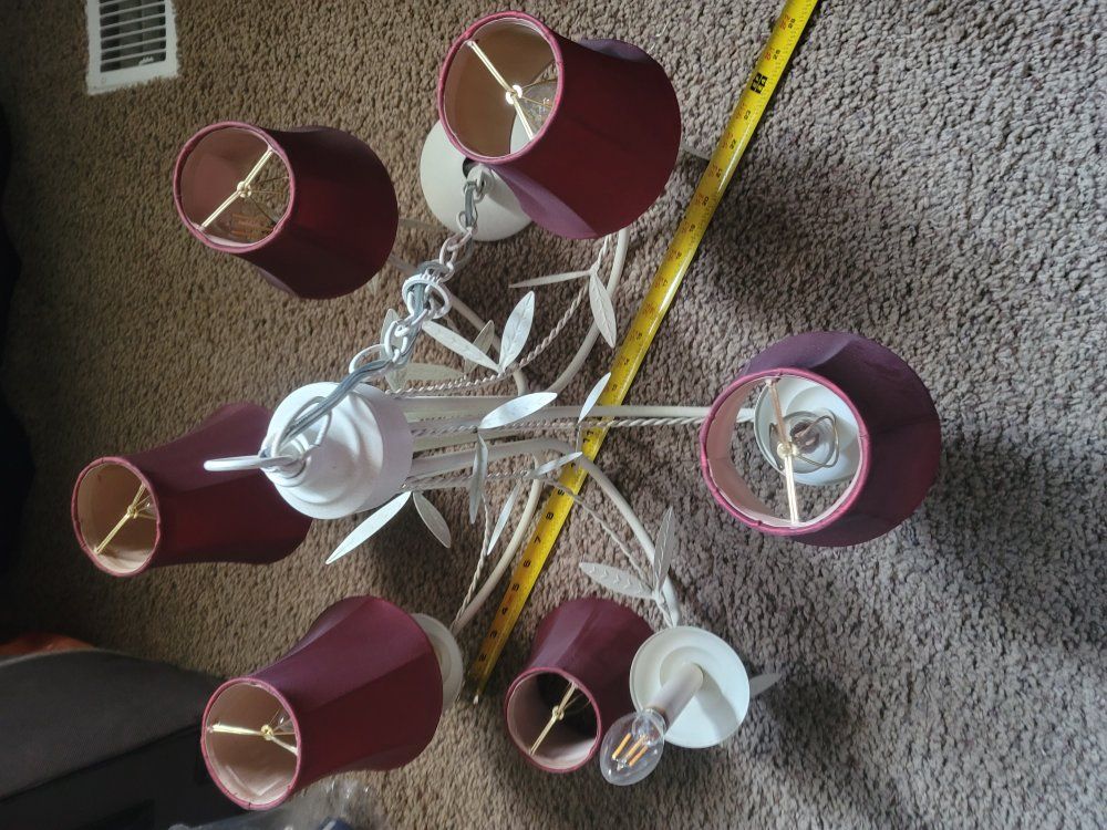 They work great. We're doing a kitchen remodel and making some changes. $25 obo on small light with the red shades (6 lights)...$35 for larger one (10 lights) over dining table obo.