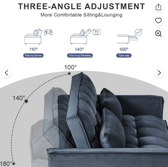 VenmoNew - 3 in 1 Convertible Sleeper Sofa Bed, Velvet, Adjustable Backrest, with Pillows and Pockets, Black. Still in the Box!
