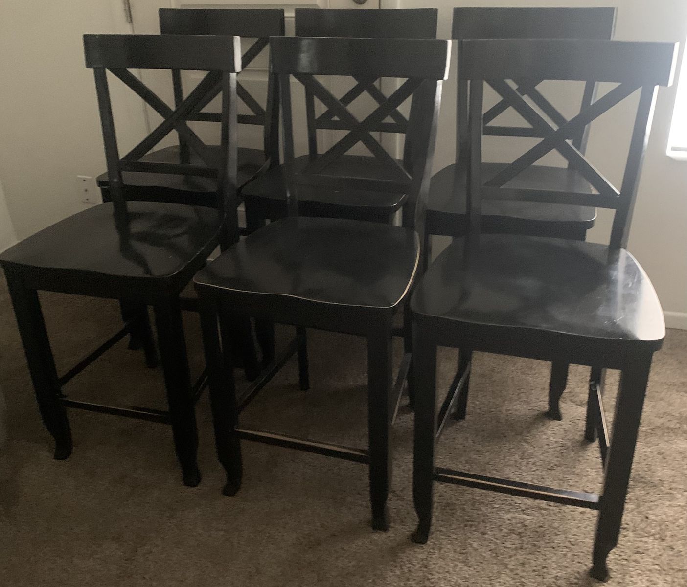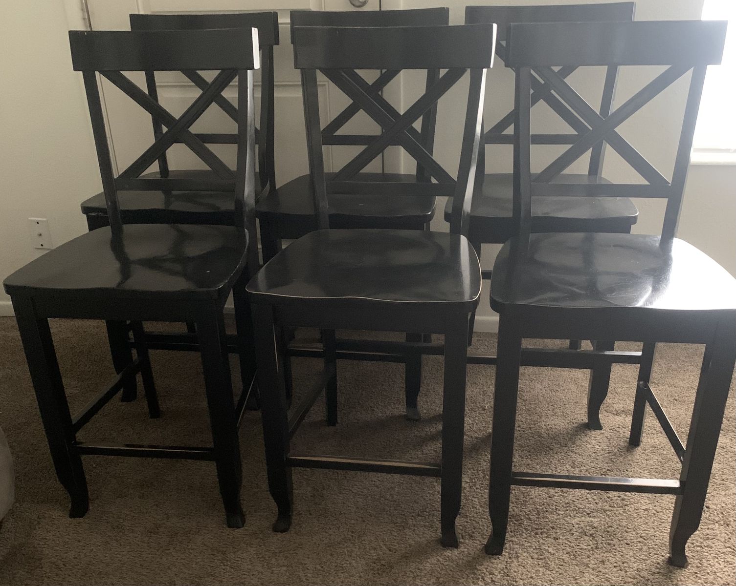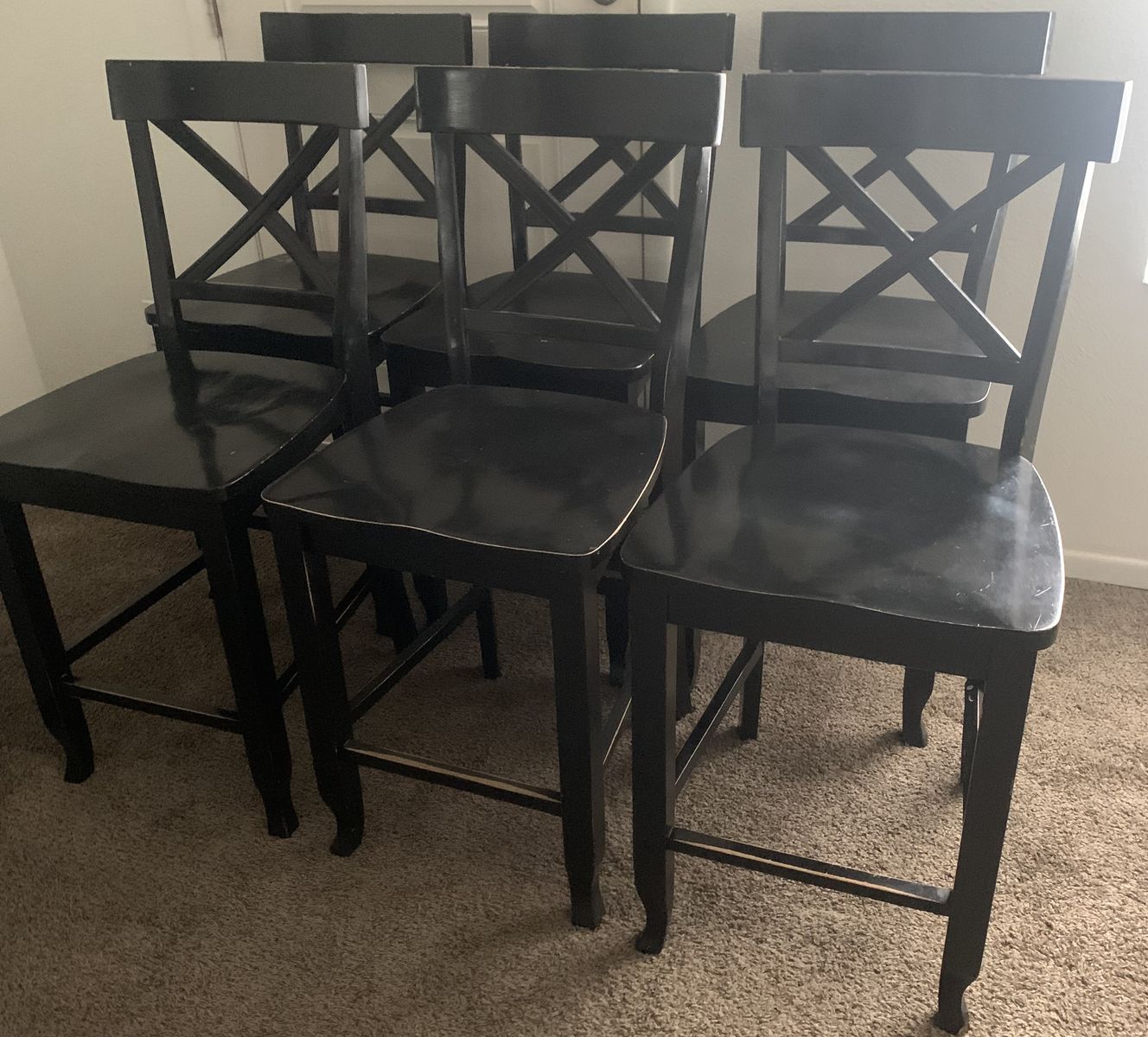 VenmoBeautiful set of 6 counter height solid wood very sturdy dining chairs Great condition 24in from floor to seat Can deliver