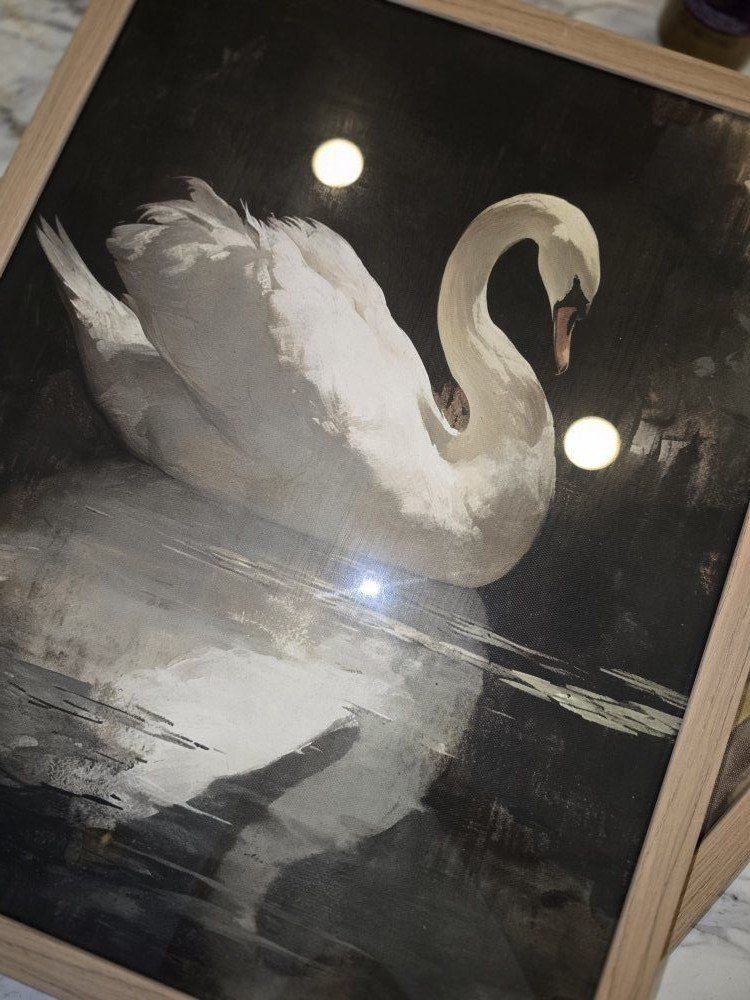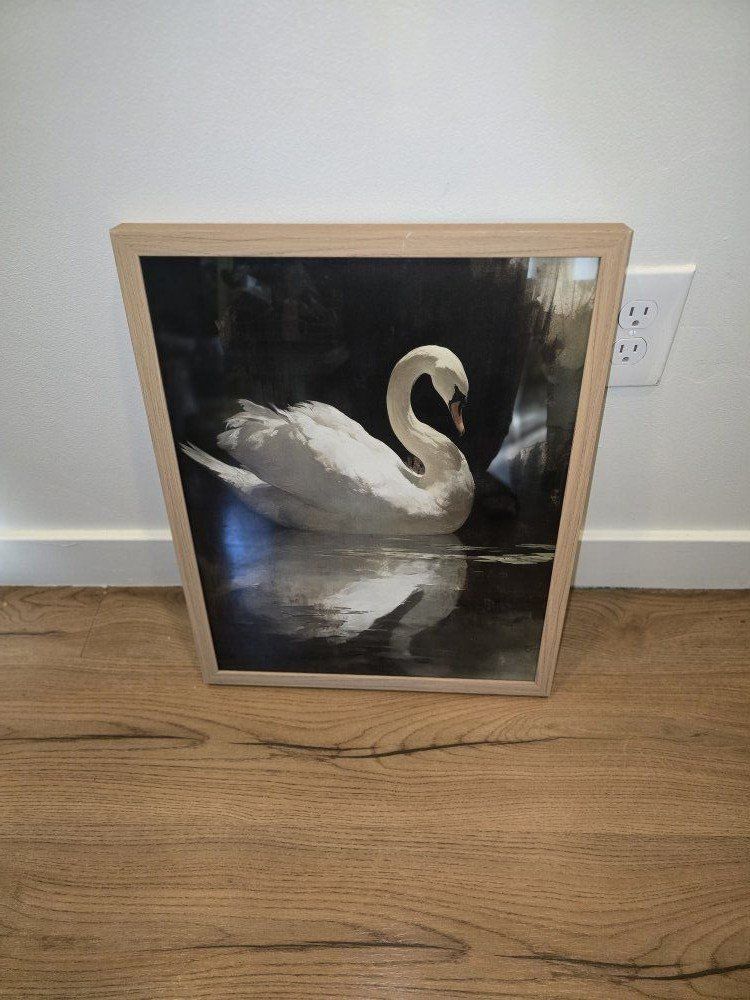 20"L X 16"W wood/glass framed thick matte high quality swan canvas print in good condition. Frame has slight normal wear. Asking $30, Venmo to hold. Porch/door pick-up only in West Haven.