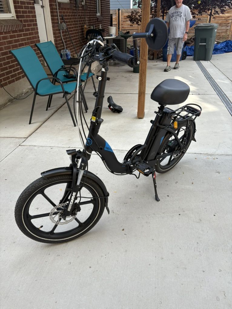 ZelleAwesome folding magnum electric bicycle. Purchased new for over $2000 locally from Salt Lake E-bikes. We also just paid to have it fully serviced and tuned up with new brake pads, etc). Storage rack, rear view mirror, bell, headlight. Cash, Venmo, or Zelle all happily accepted. Pickup in salt lake, Sugarhouse area near 2100 south, 2100 east. Charger and 4 keys included. Nice soft extra large seat. 7 speed gears, 6 speeds of power, with very powerful electric assist. This was purchased for our grandchild who got a job and doesn’t come by often enough to use it anymore. No problems, happy to let you test ride it in the large church parking lot near our home.
