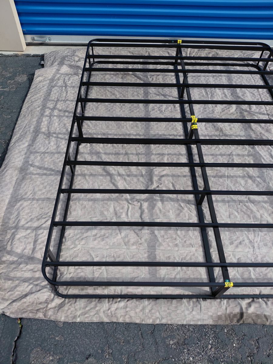 Check out this metal Queen platform bed. Overall, it is in good condition. There might be some imperfections from moving, a few scratches, and signs of use, etc.