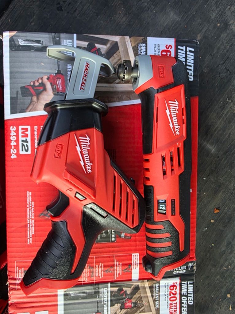 Drill Impact Driver Hackzall Recip Saw Muti-Tool Oscillator CP2.0 Batteries X2 M12 Charger Contractor Bag