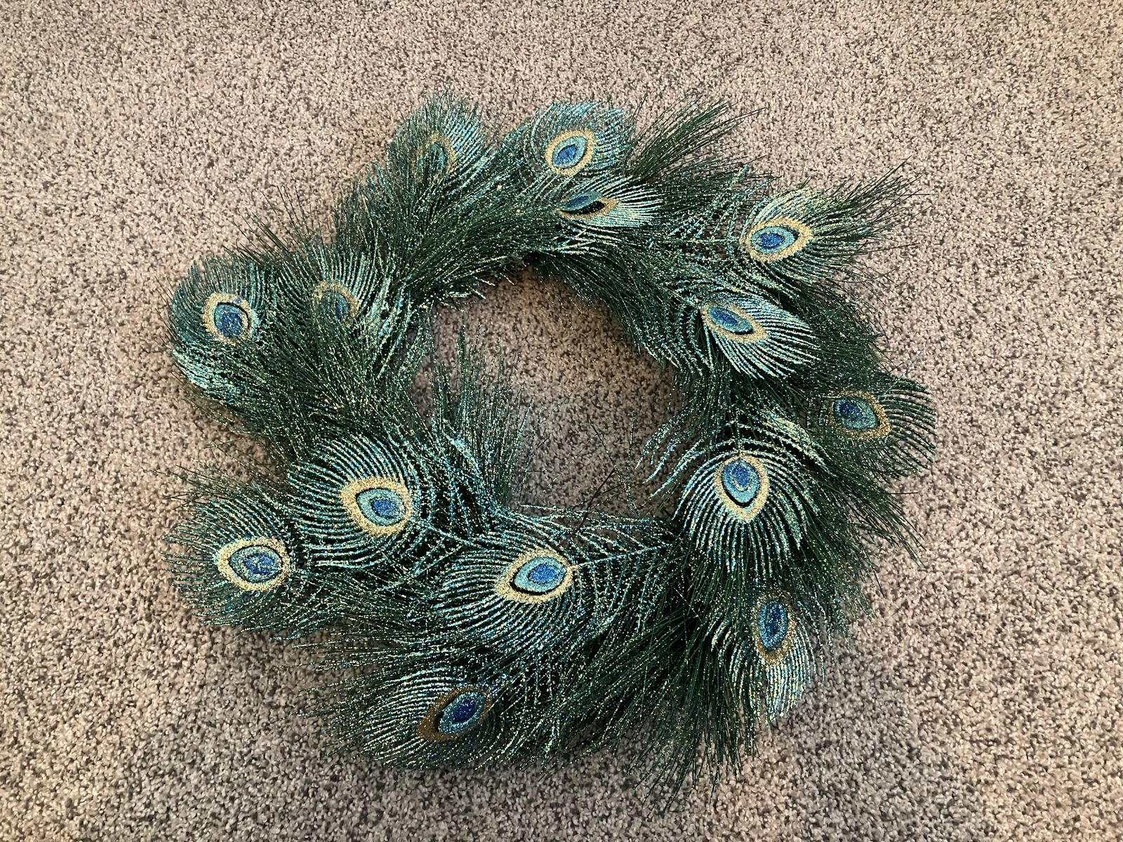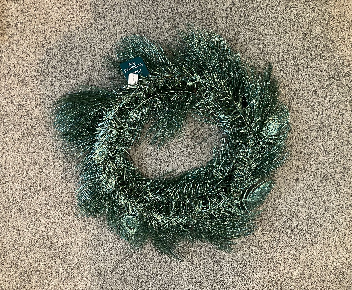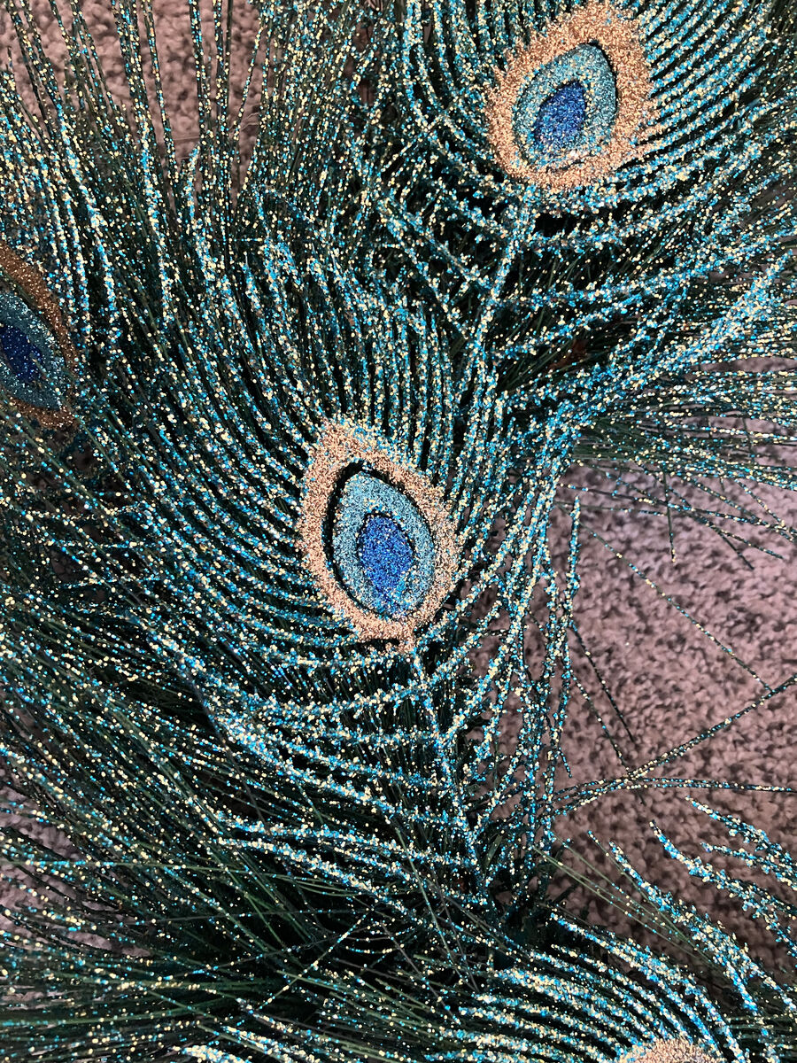 VenmoNever been used! Glitter peacock wreath measures about 21 inches.